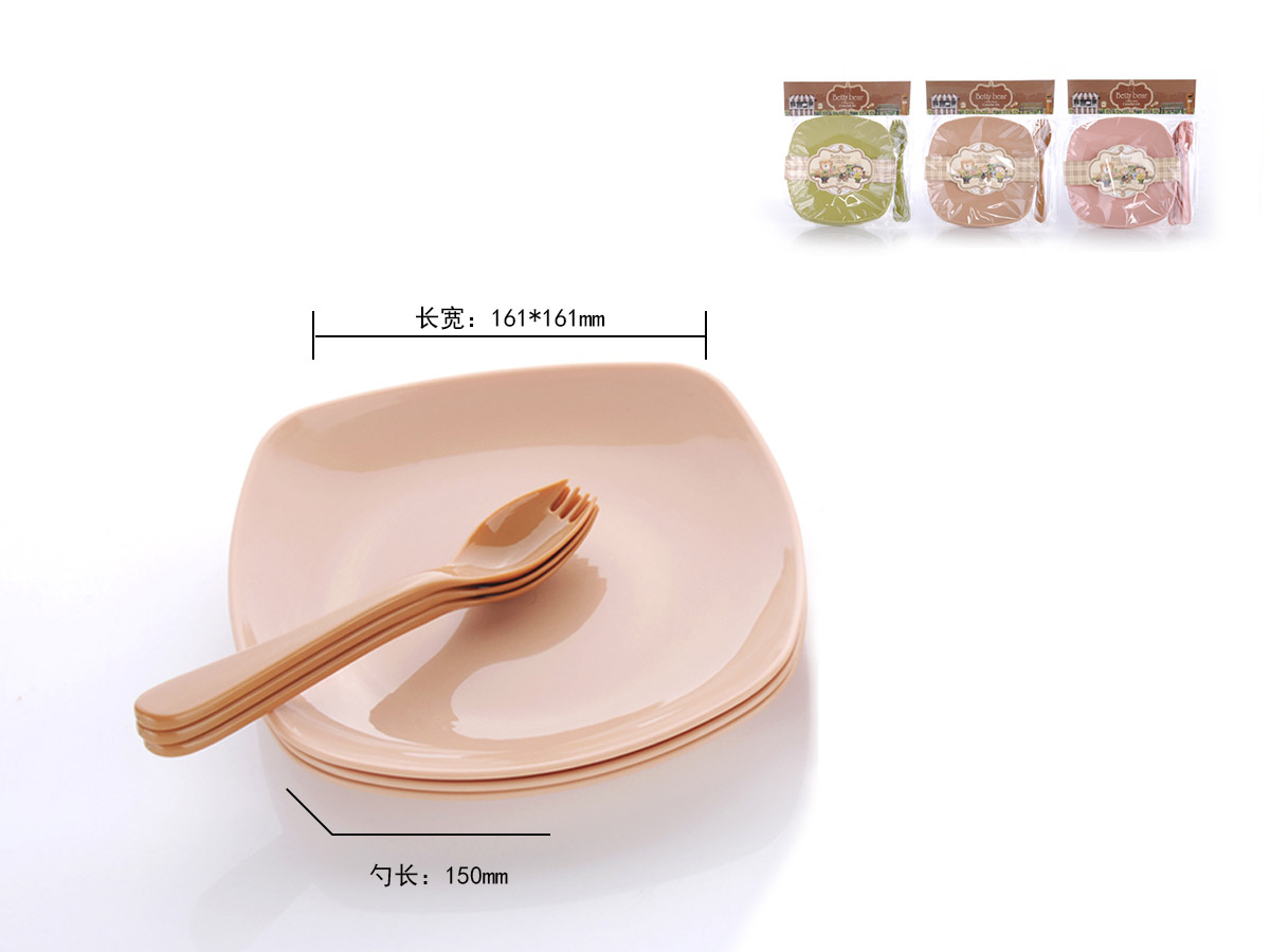 得力熊歐式中號簡約正方餐盤(4pcs)( 配4pcs叉匙)