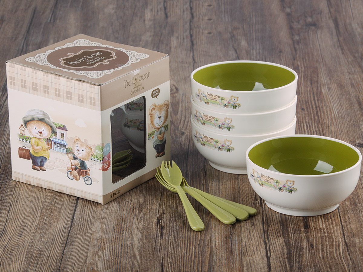 得力熊小號中式雙色餐碗(4PCS)