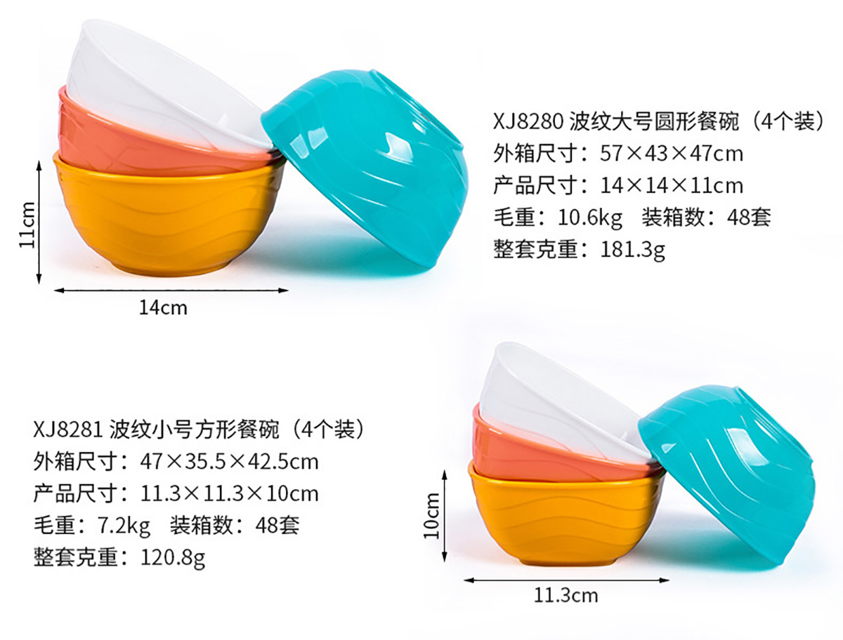 波紋圓形/方形餐碗 小號/中號/大號(4個裝)