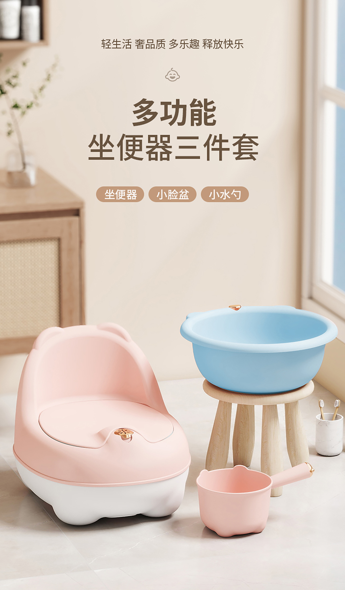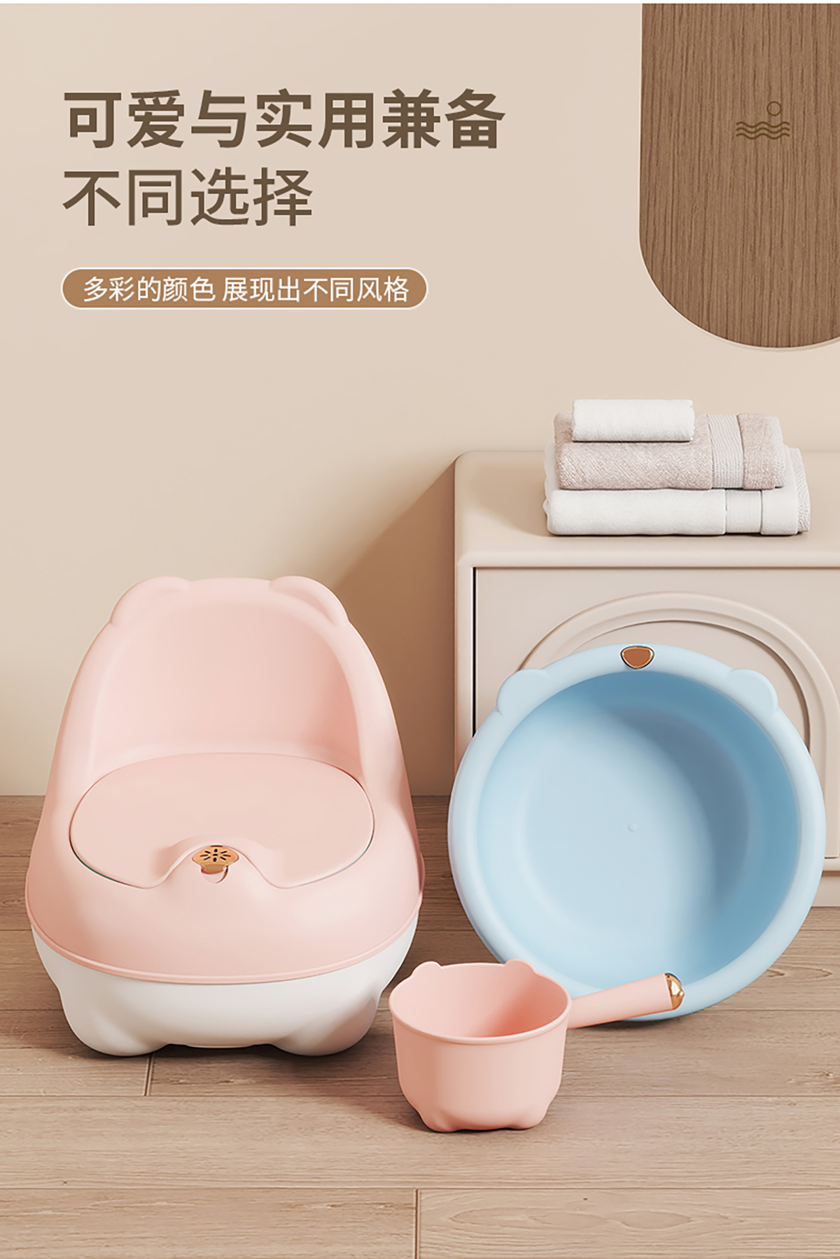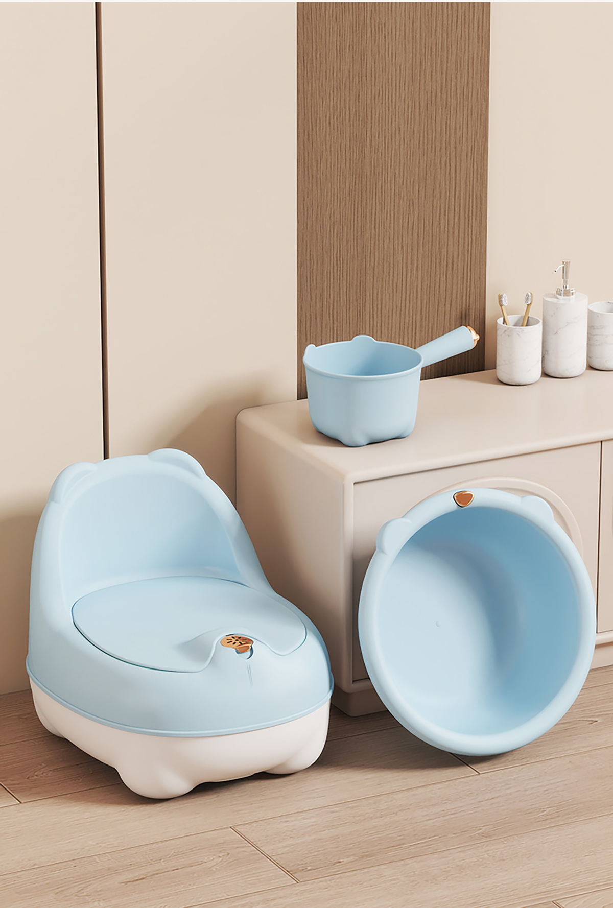 造趣熊熊耳盆(小號/大號)/小水勺/坐便器