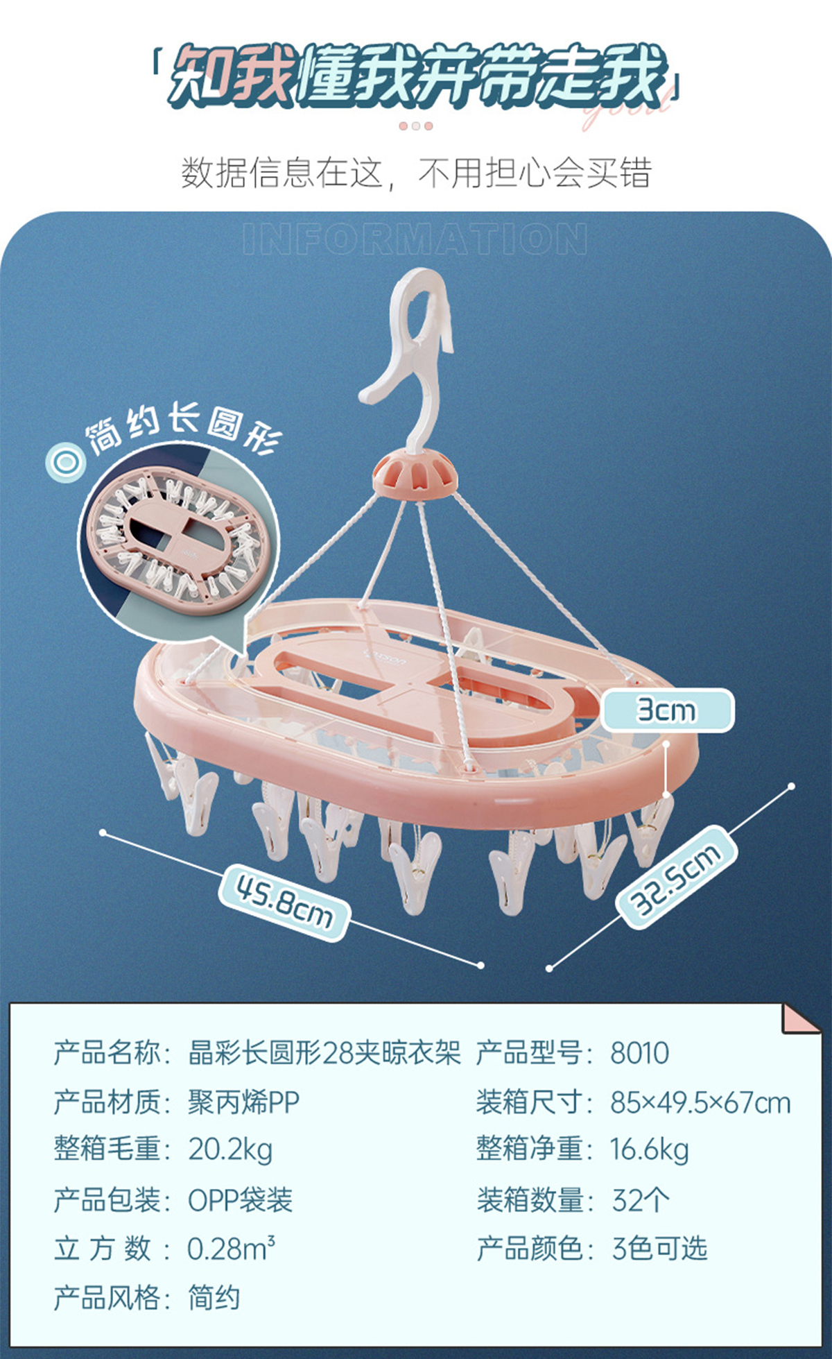 晶彩長圓形28夾晾衣架 2023年新色