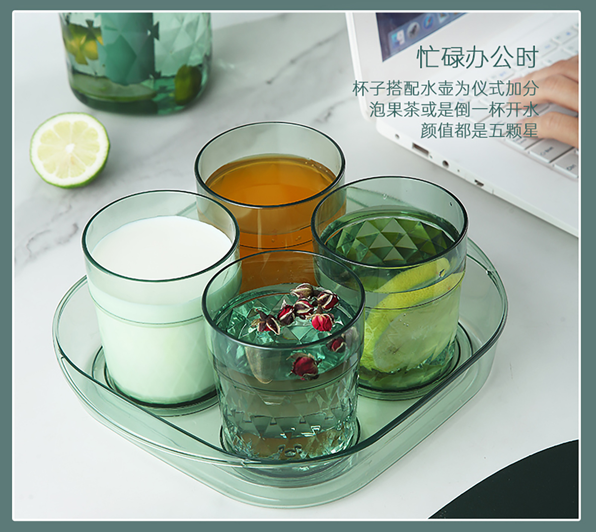 晶透水杯套裝(4杯+托盤)310mlx4
