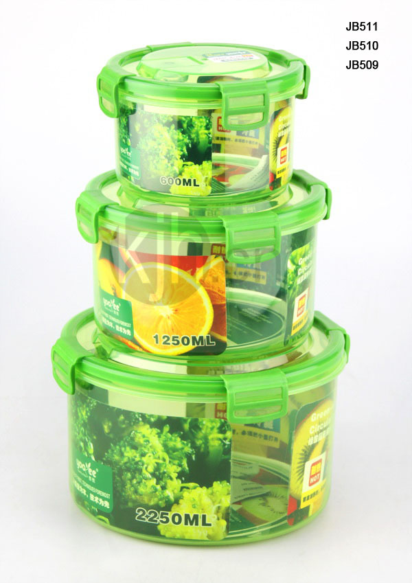 綠意圓形大、中、小號(hào)保鮮盒(2250ml、1250ml、600ml)
