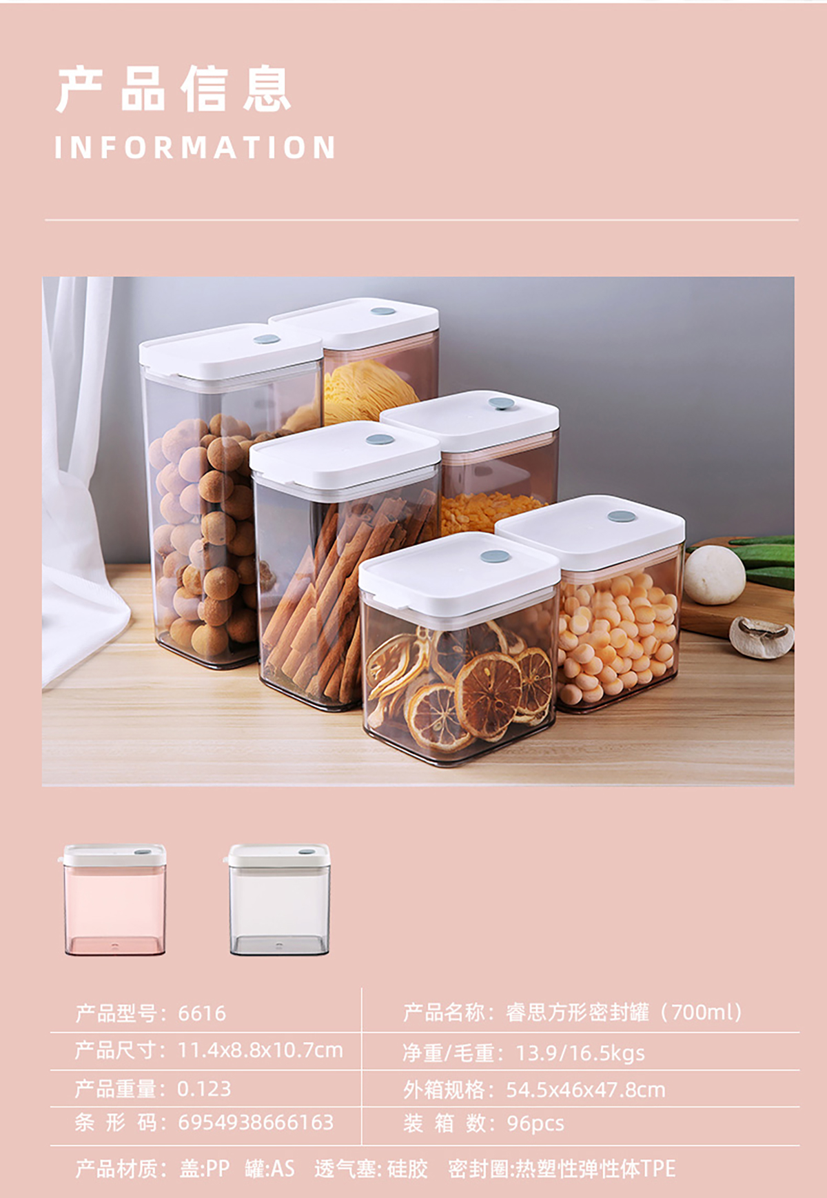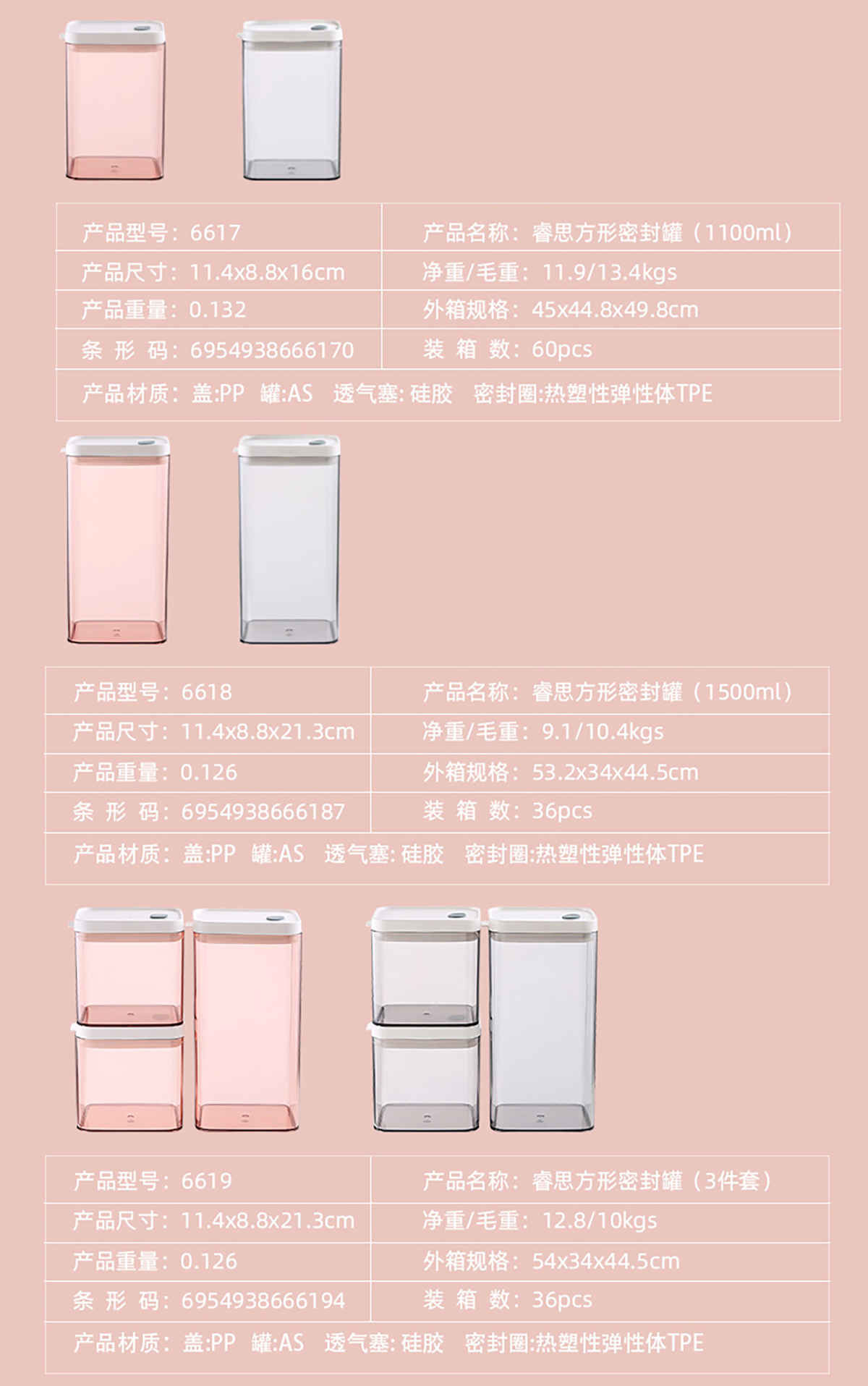 睿思長(zhǎng)方形密封罐(700ml/1100ml/1500ml/1900ml)