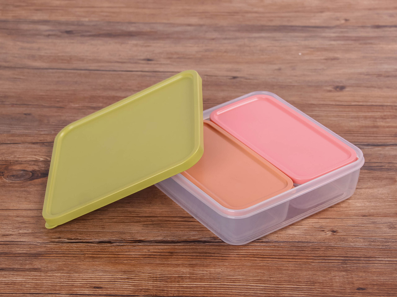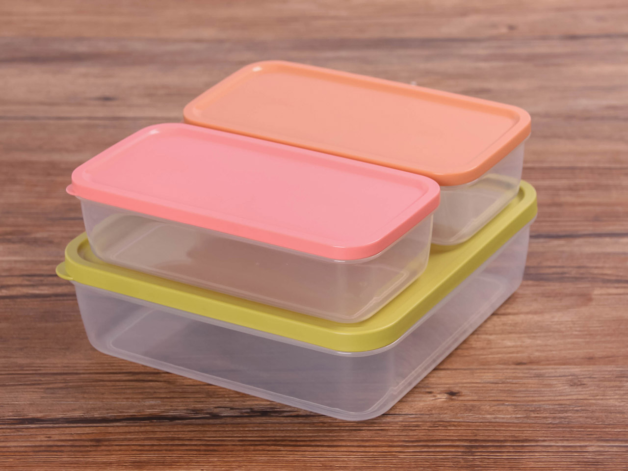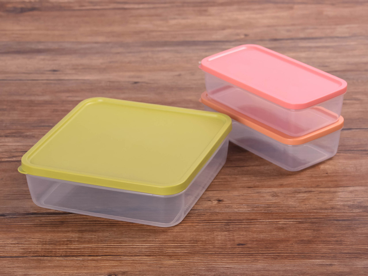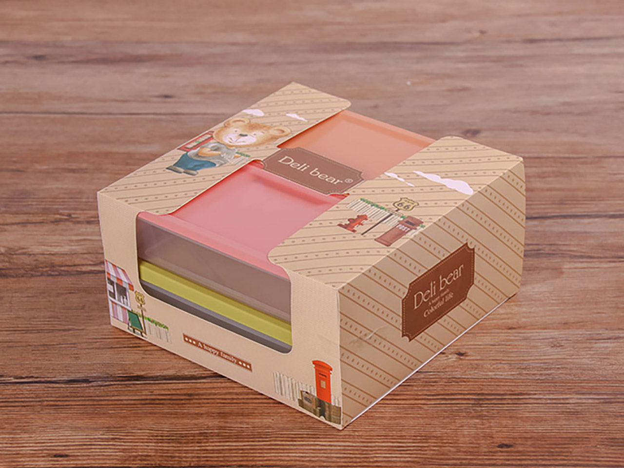 得力熊正方3件套疊疊保鮮盒(混色)