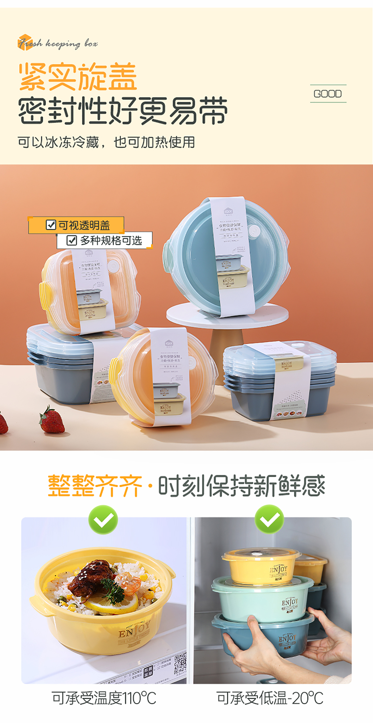 圓形輕便微波保鮮盒(小/大)(4個(gè)莊/3個(gè)莊)500ml/1300ml 2022新色