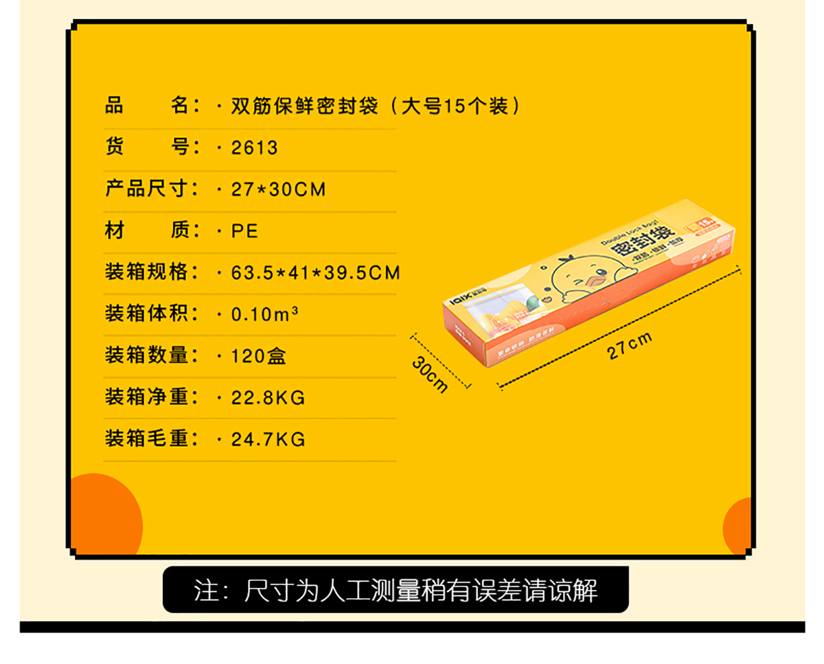 加厚雙筋保鮮密封袋(小號30個(gè)裝/中號20個(gè)裝/大號15個(gè)裝)
