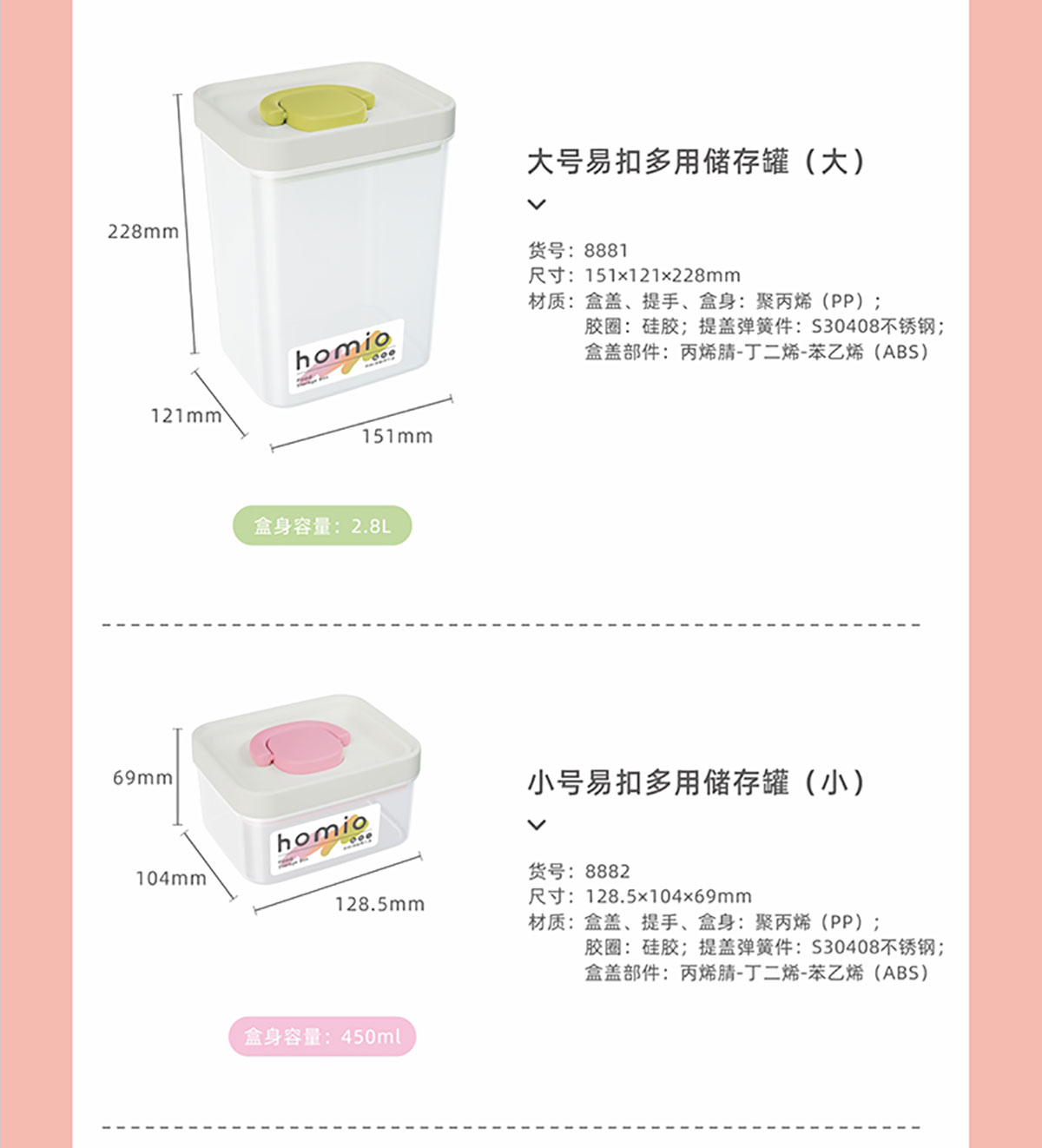 大號(hào)/小號(hào)易扣多用儲(chǔ)存罐(小號(hào)/中號(hào)/大號(hào))