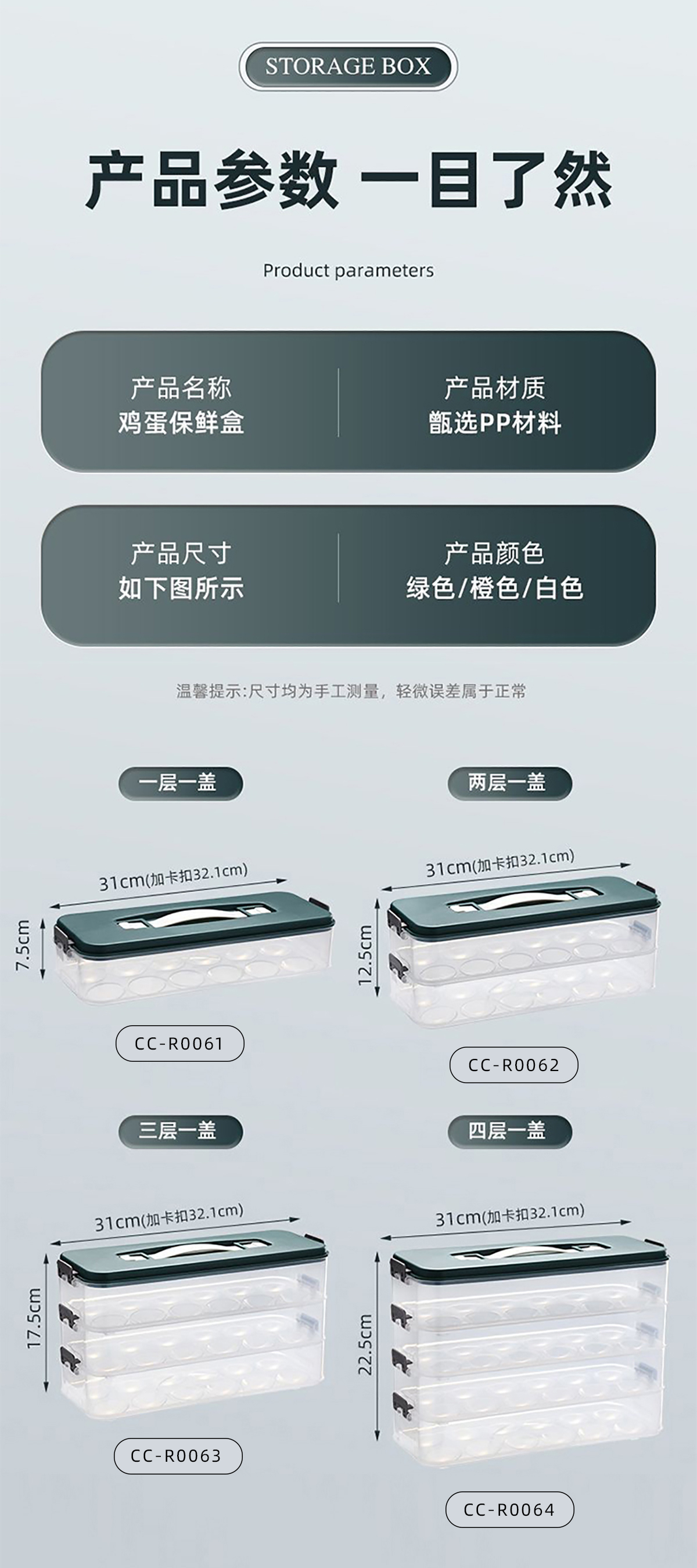 Size: CC-R0061(單層):310(加卡扣)321*75mm