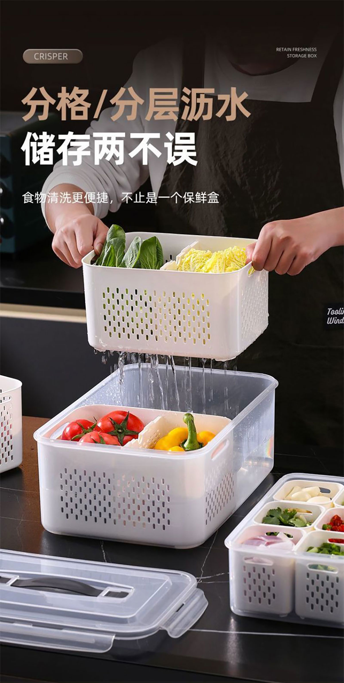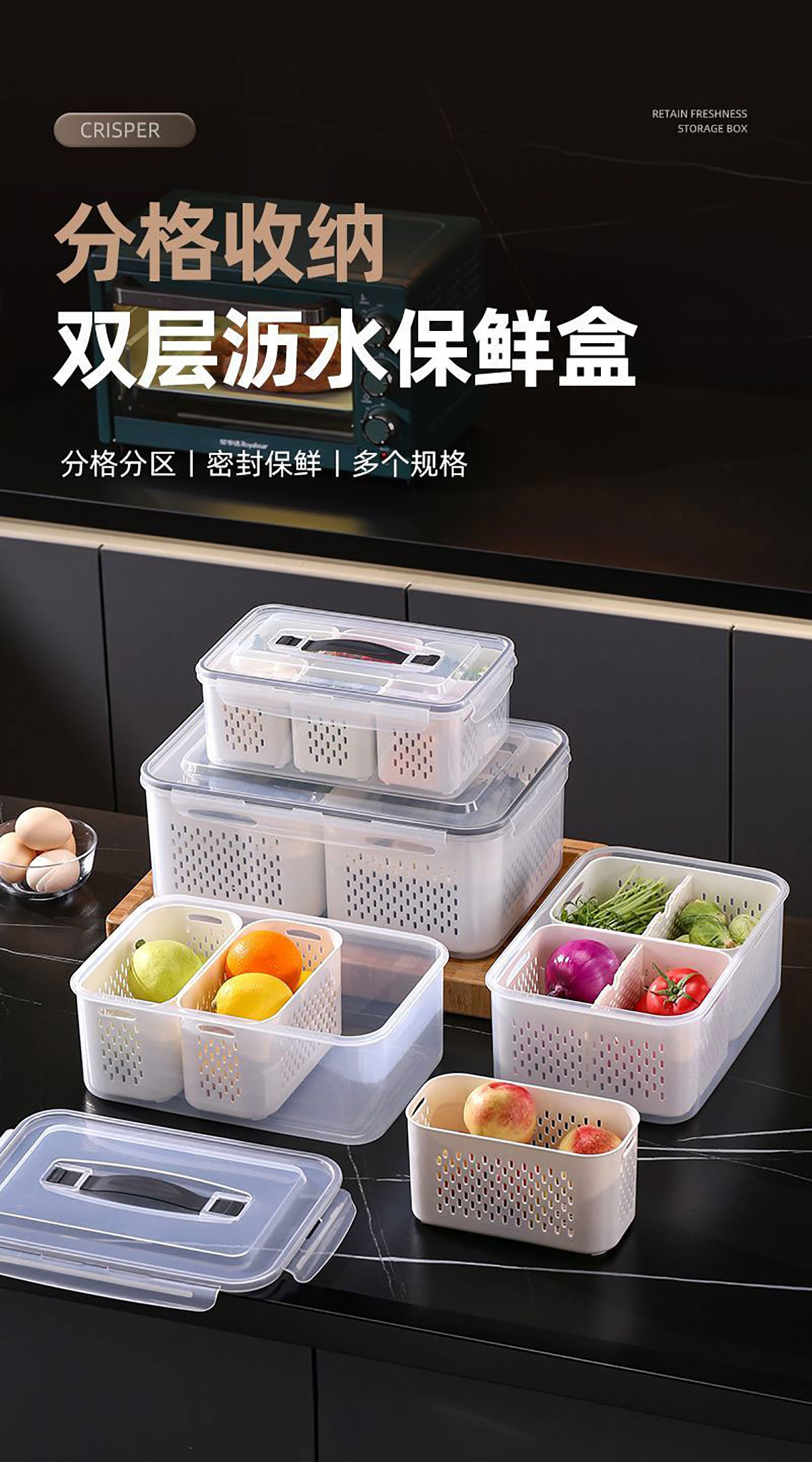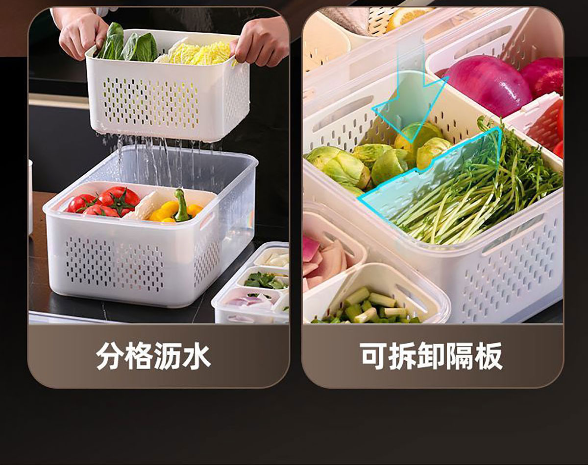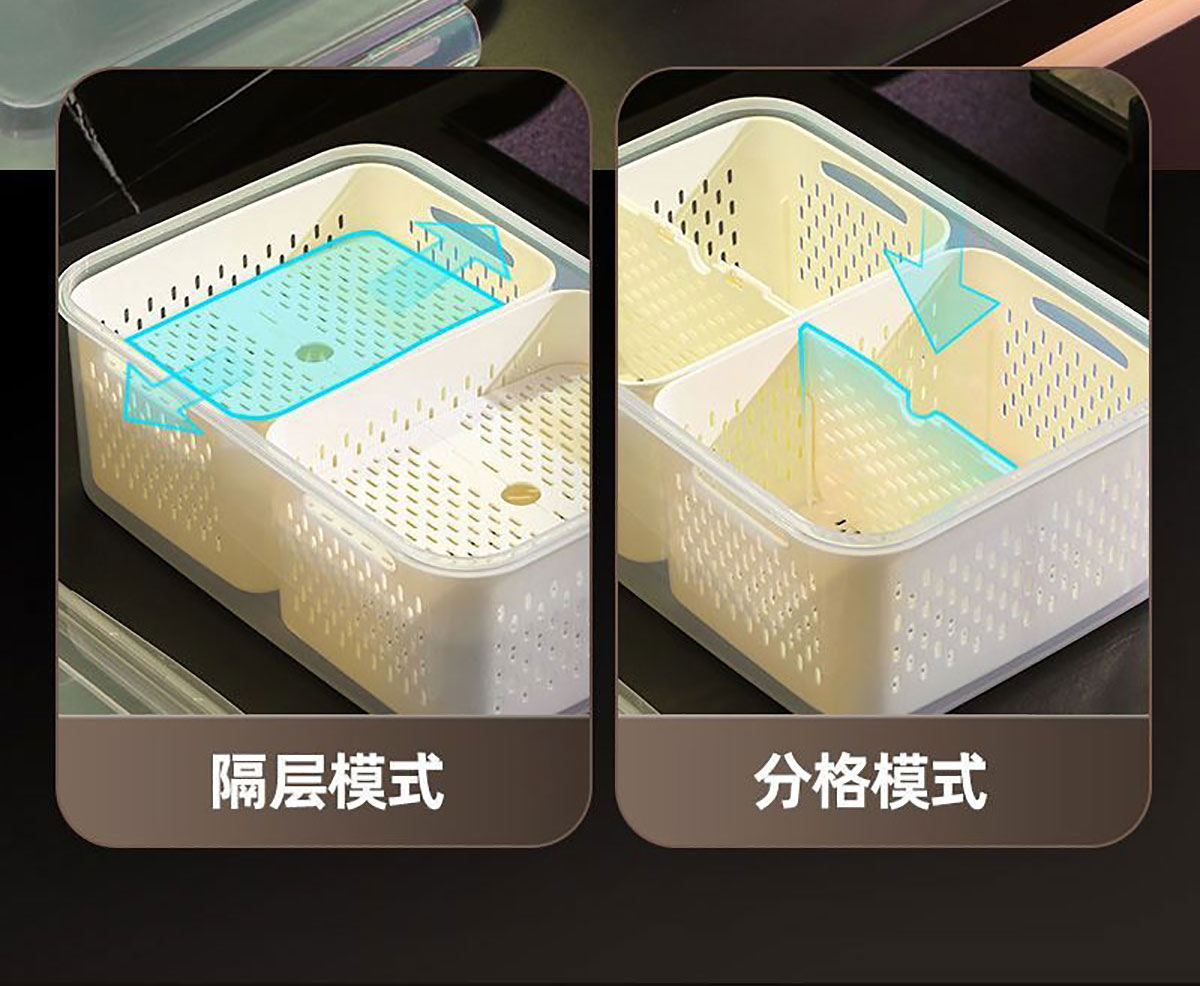 手提密封2格/3格/6格瀝水保鮮盒(小號/中號/大號)