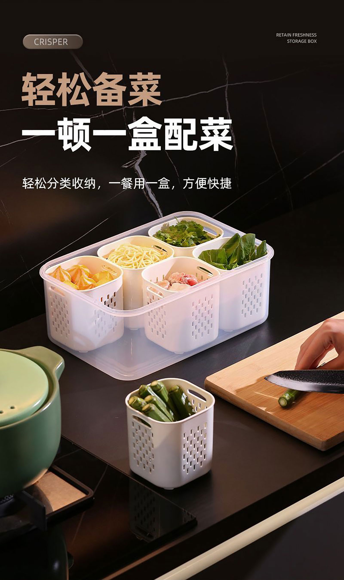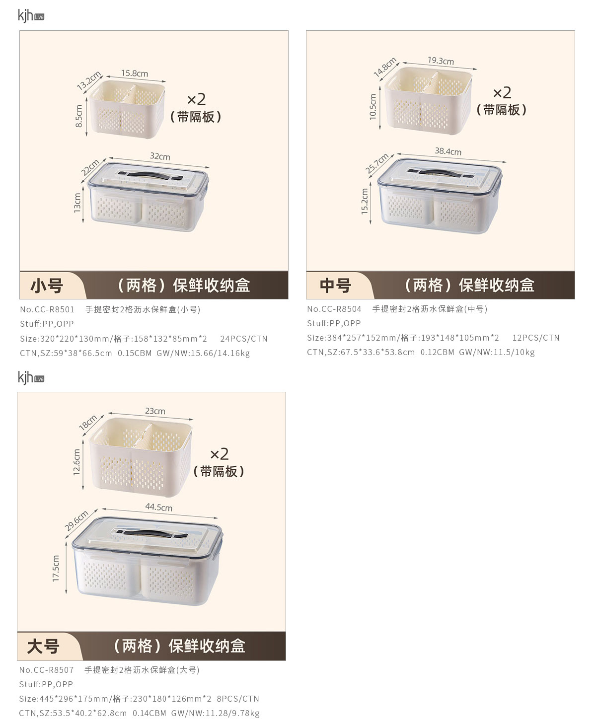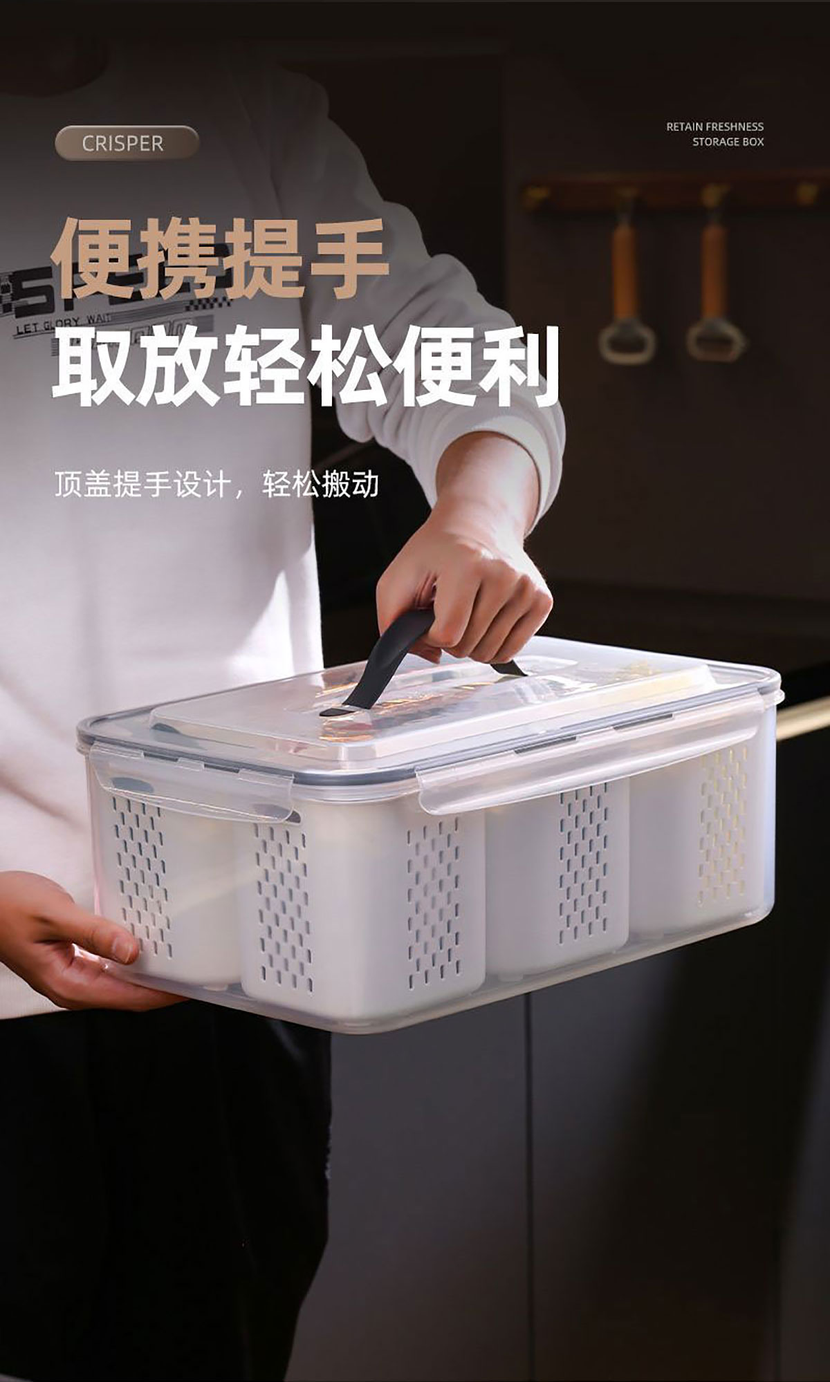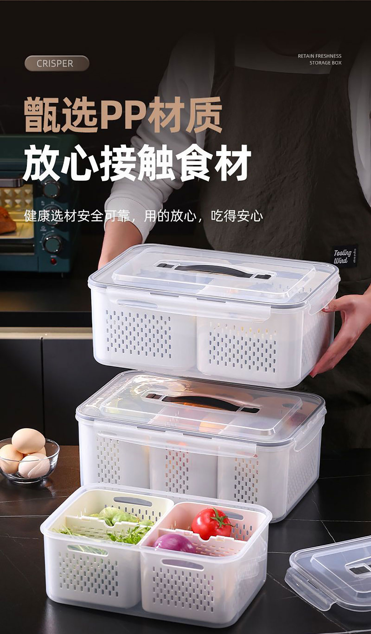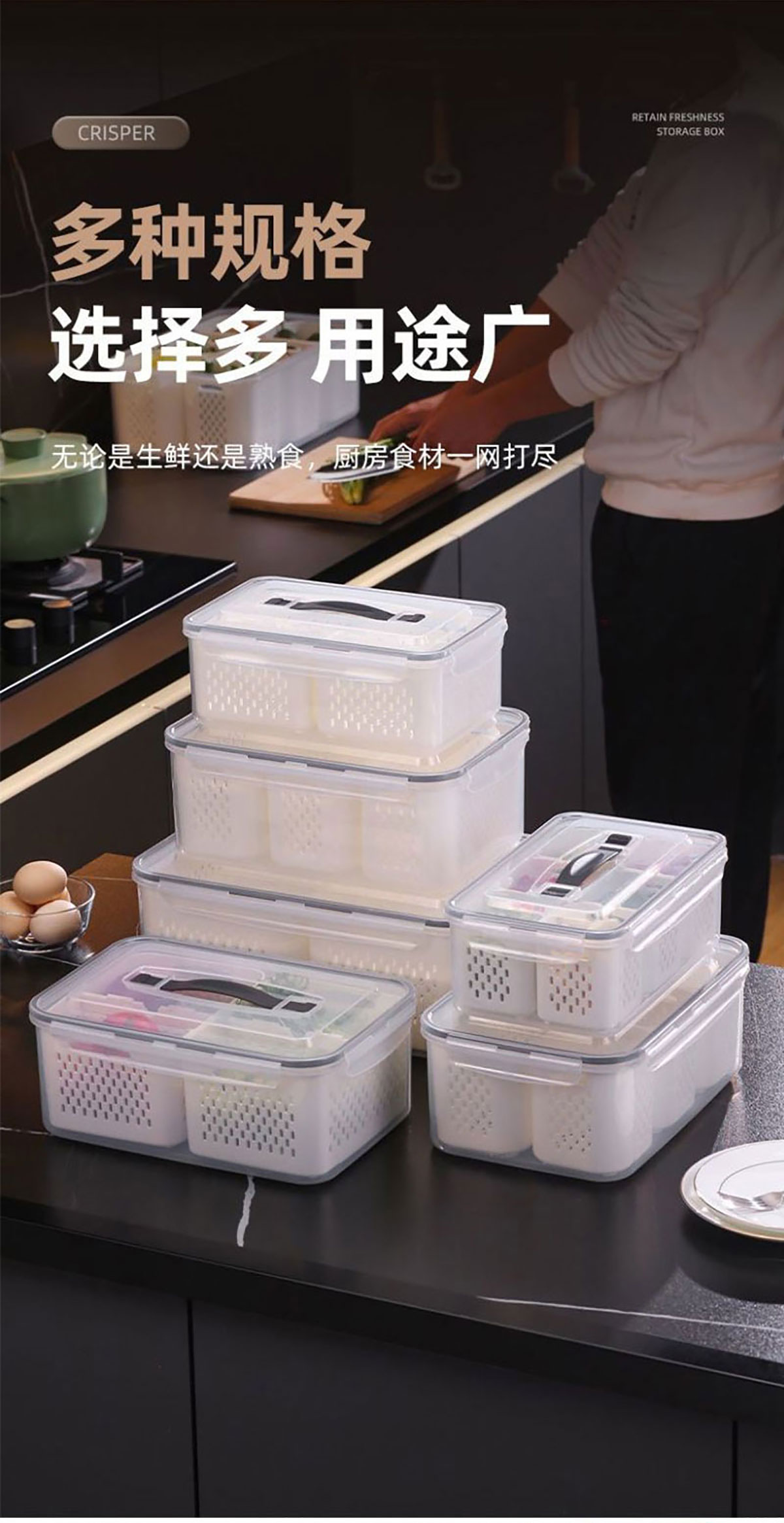 手提密封2格/3格/6格瀝水保鮮盒(小號/中號/大號)