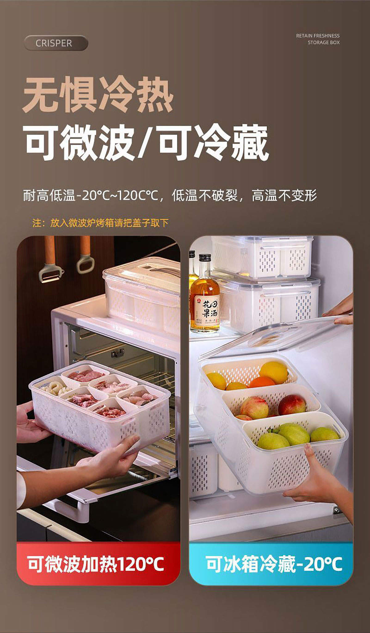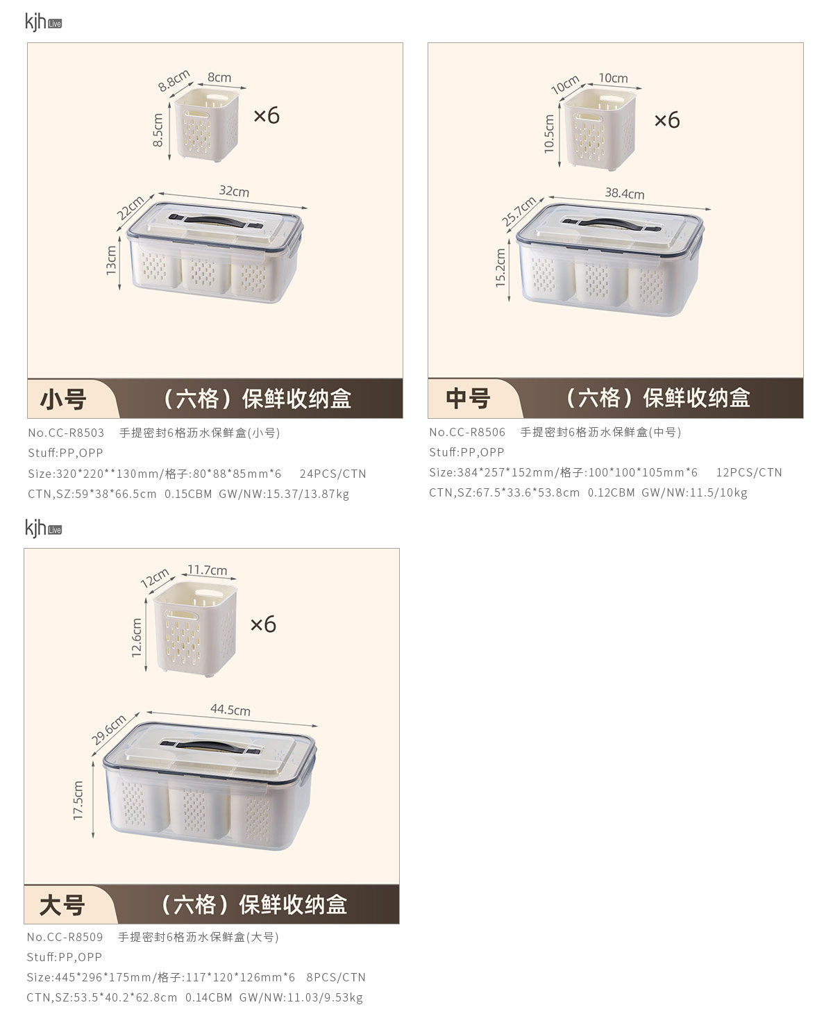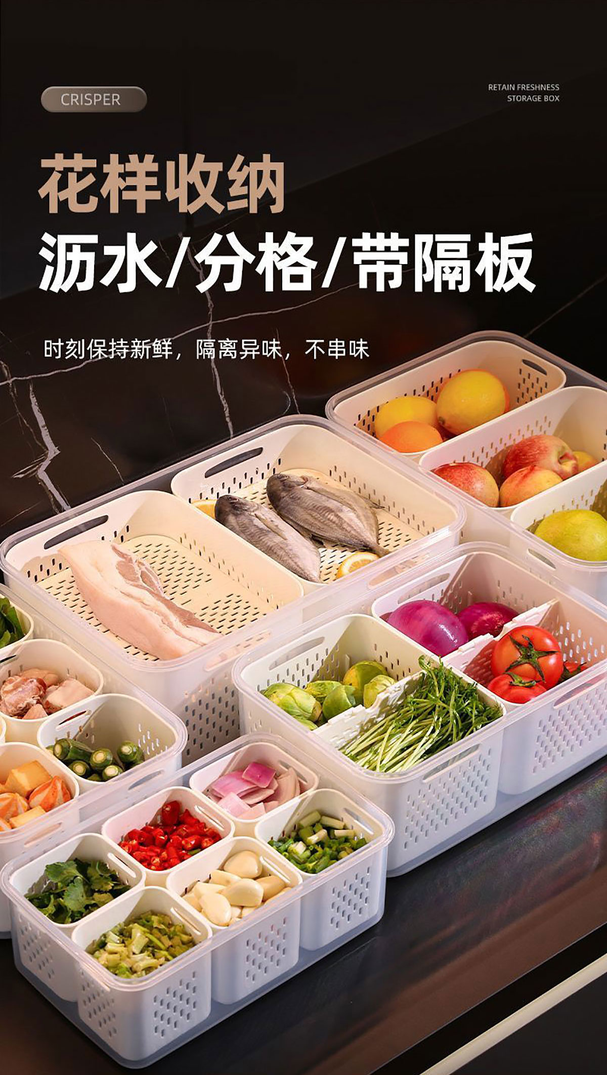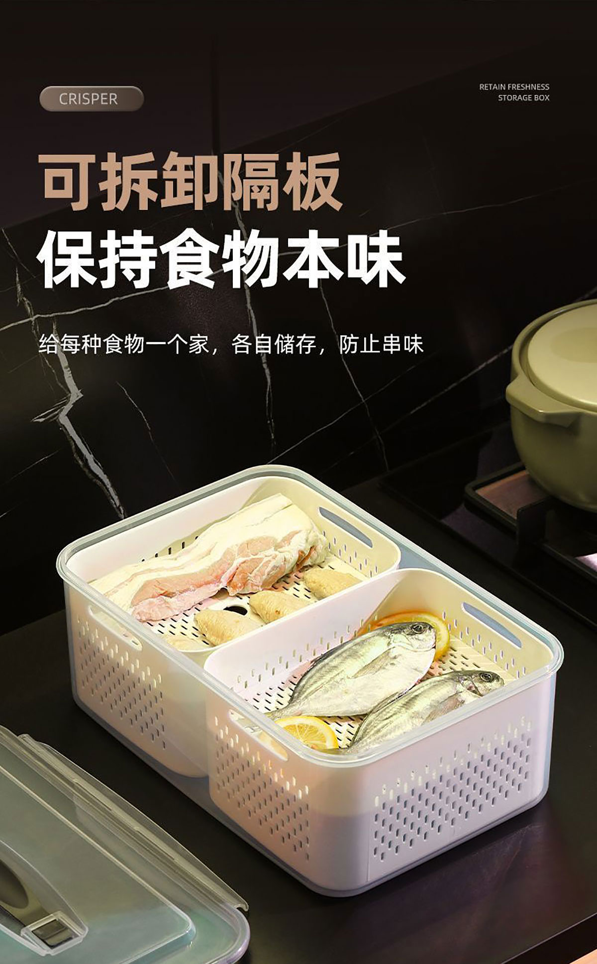 手提密封2格/3格/6格瀝水保鮮盒(小號/中號/大號)