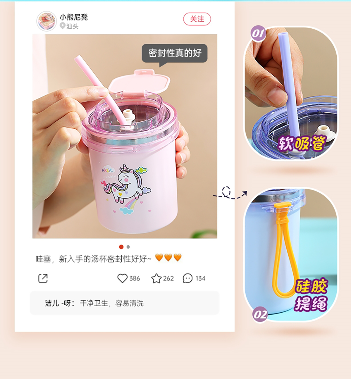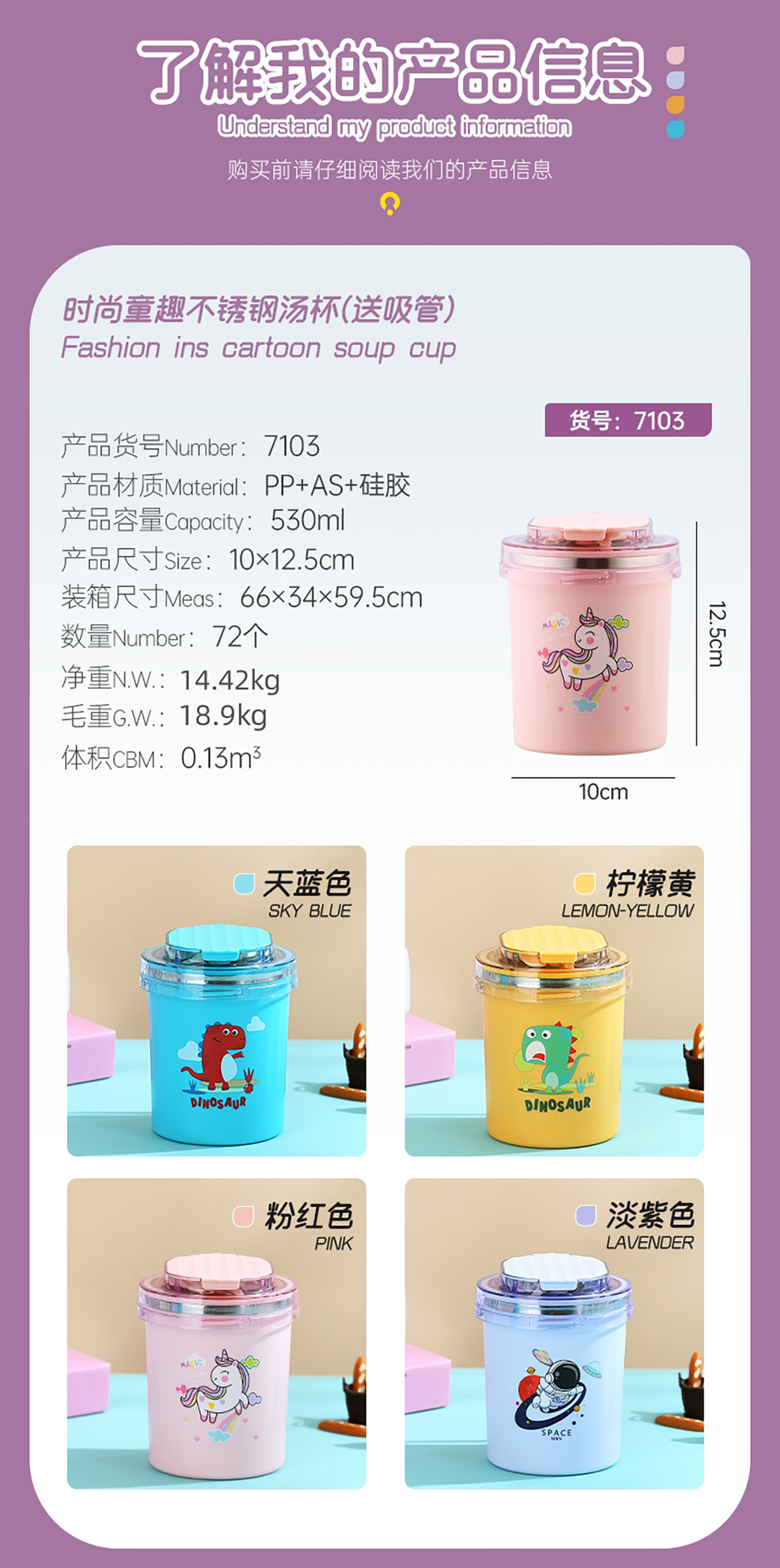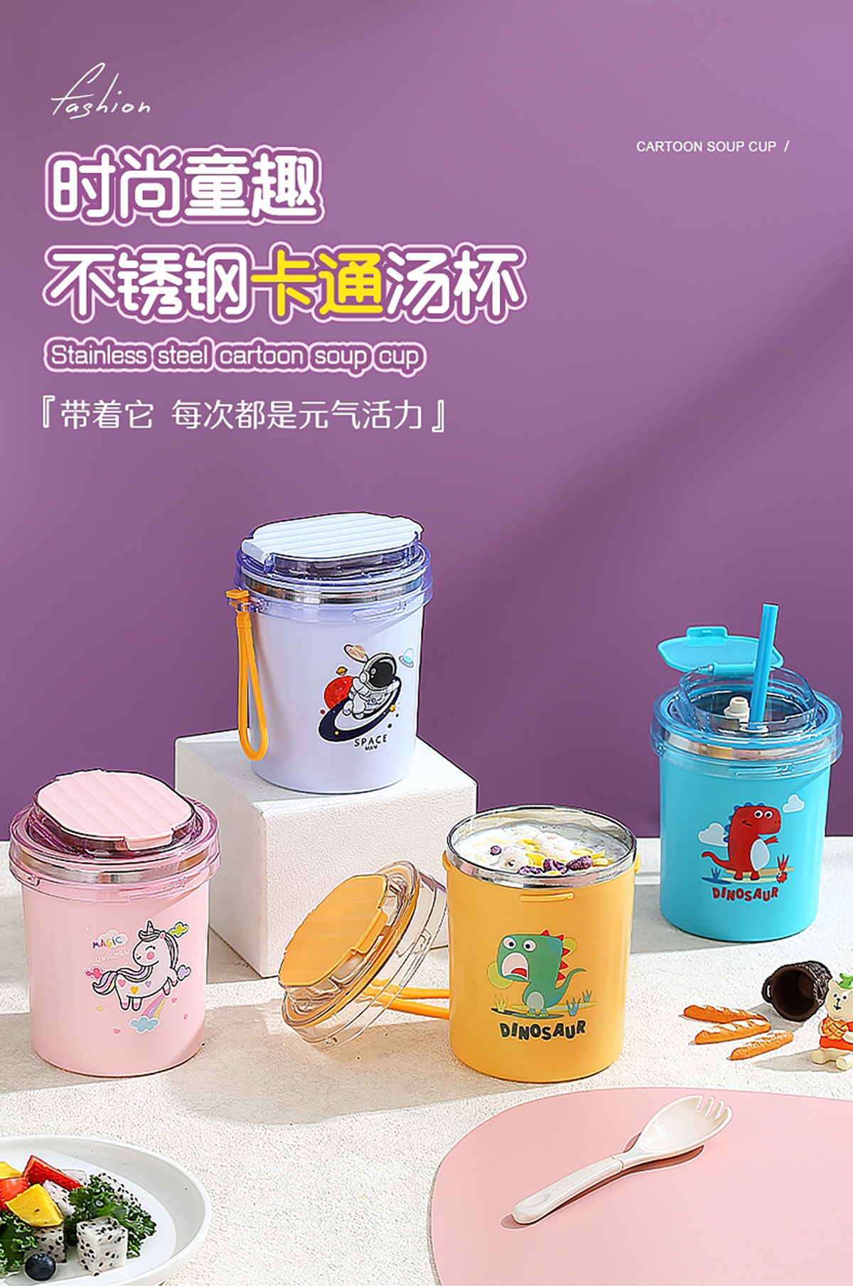 時尚童趣湯杯(530ml)+送吸管