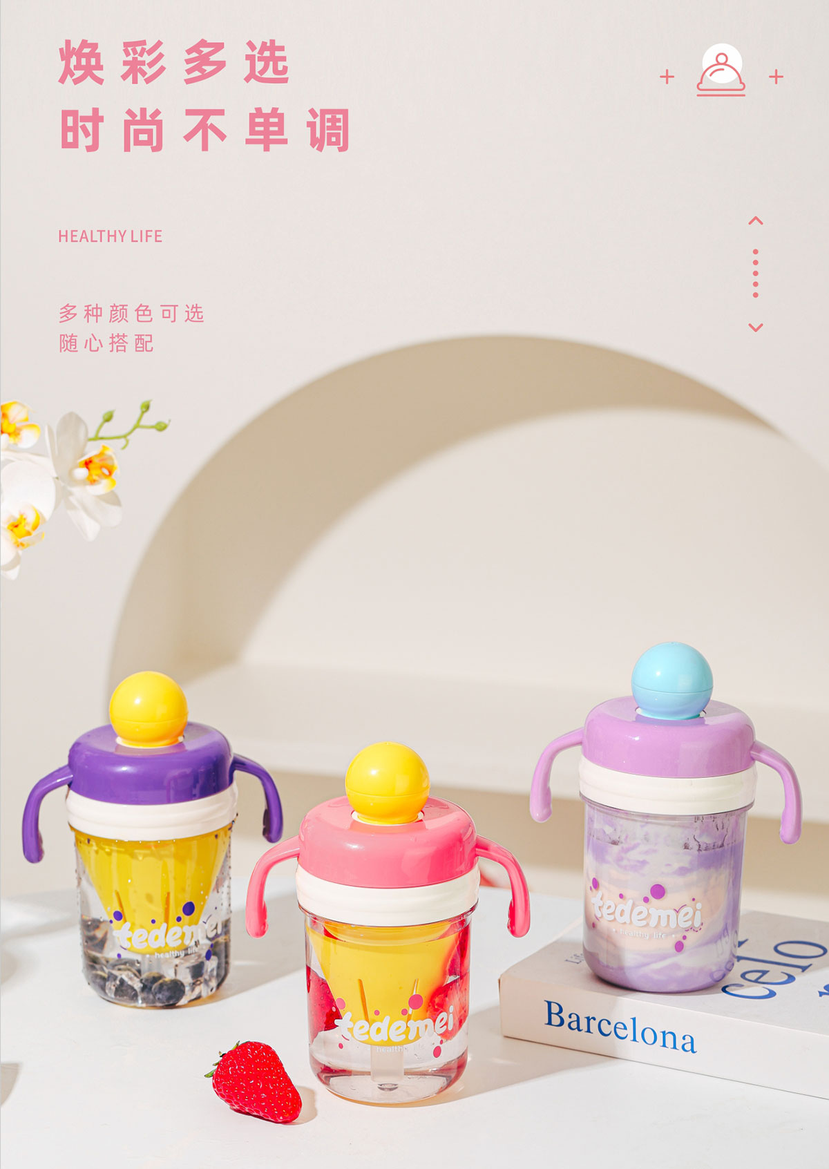 夏日繽紛隨手杯(帶把手)490ml