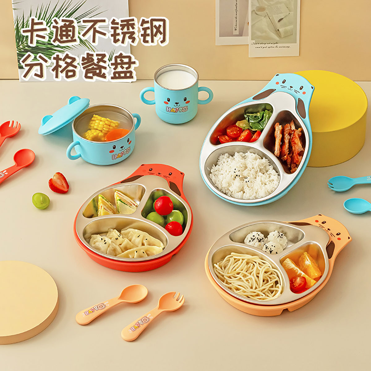 可兒萌獺不銹鋼套裝兒童餐具