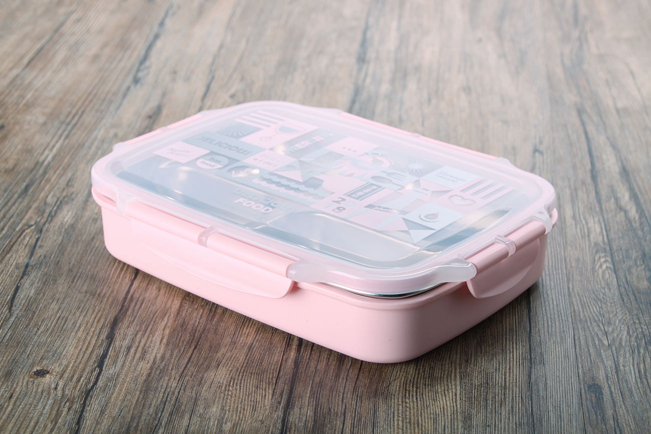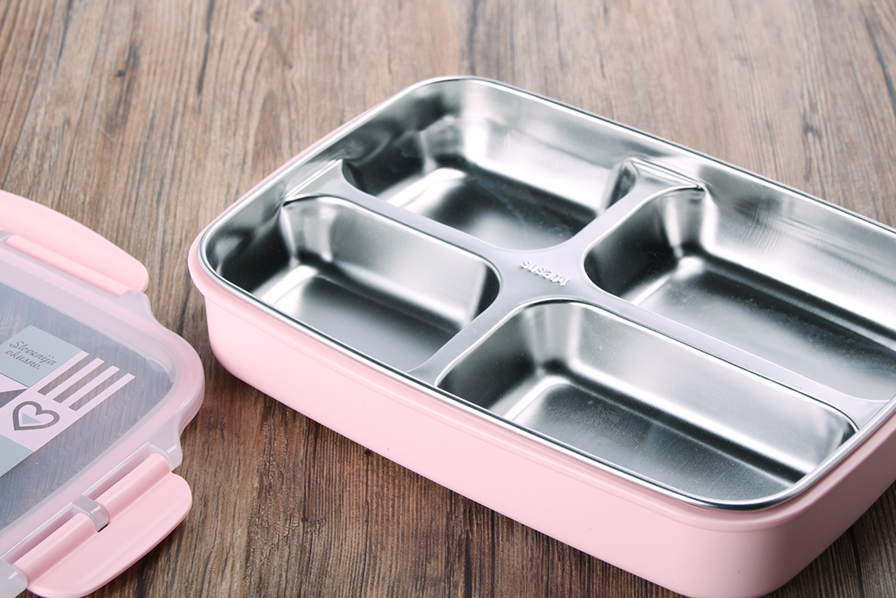 好味方形四格密封不銹鋼飯盒(平蓋款)