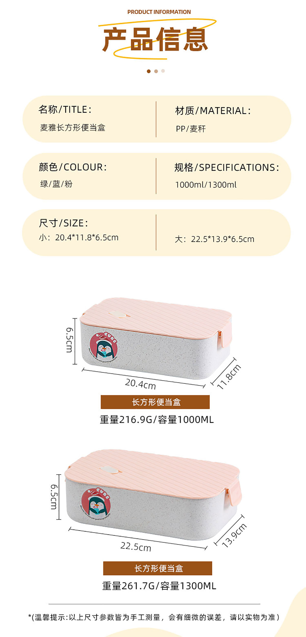 麥雅長方形便當(dāng)盒1000ml/1300ml