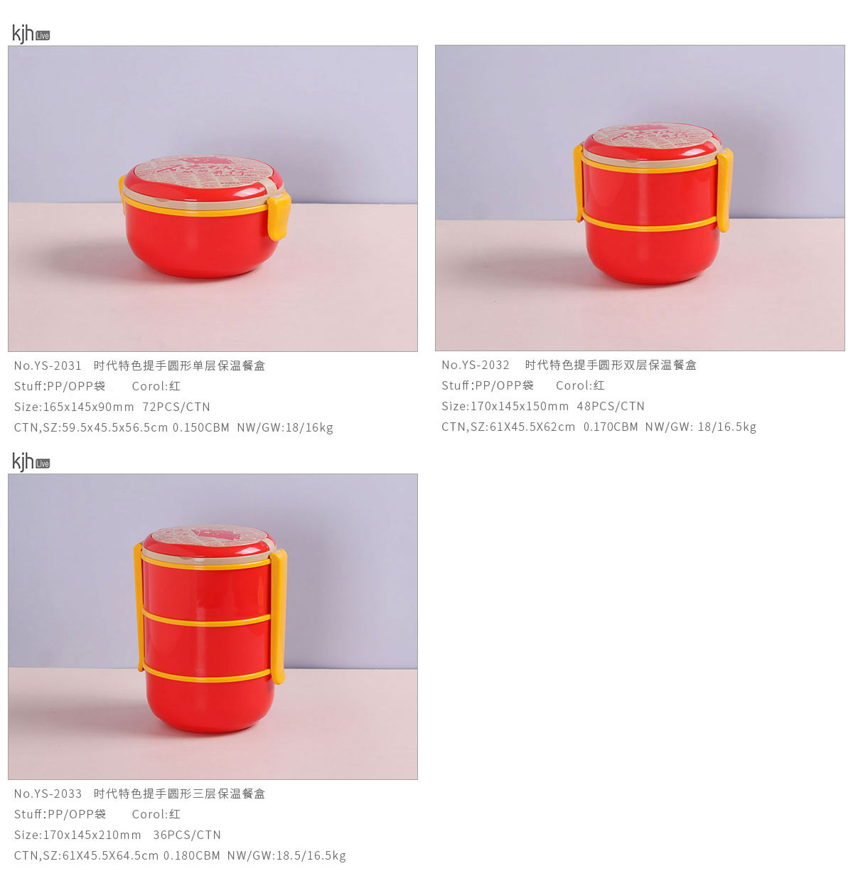 時(shí)代特色提手圓形單層/雙層/三層保溫餐盒