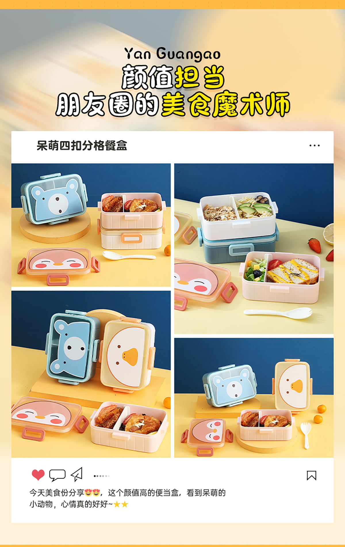 卡通方扣分格飯盒600ml