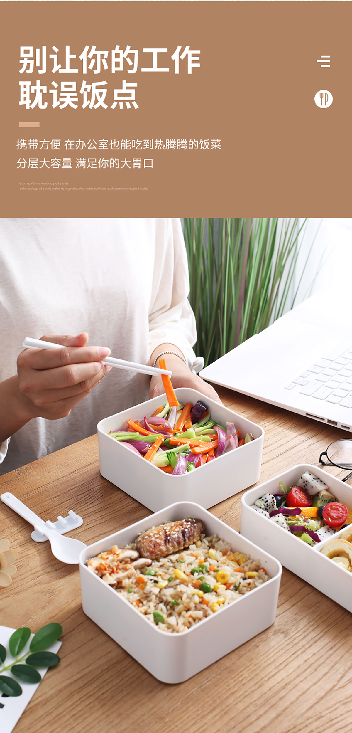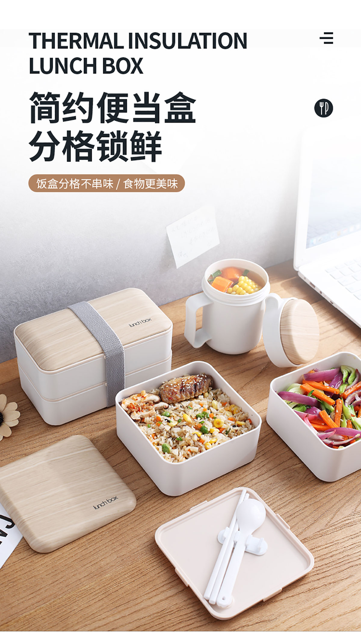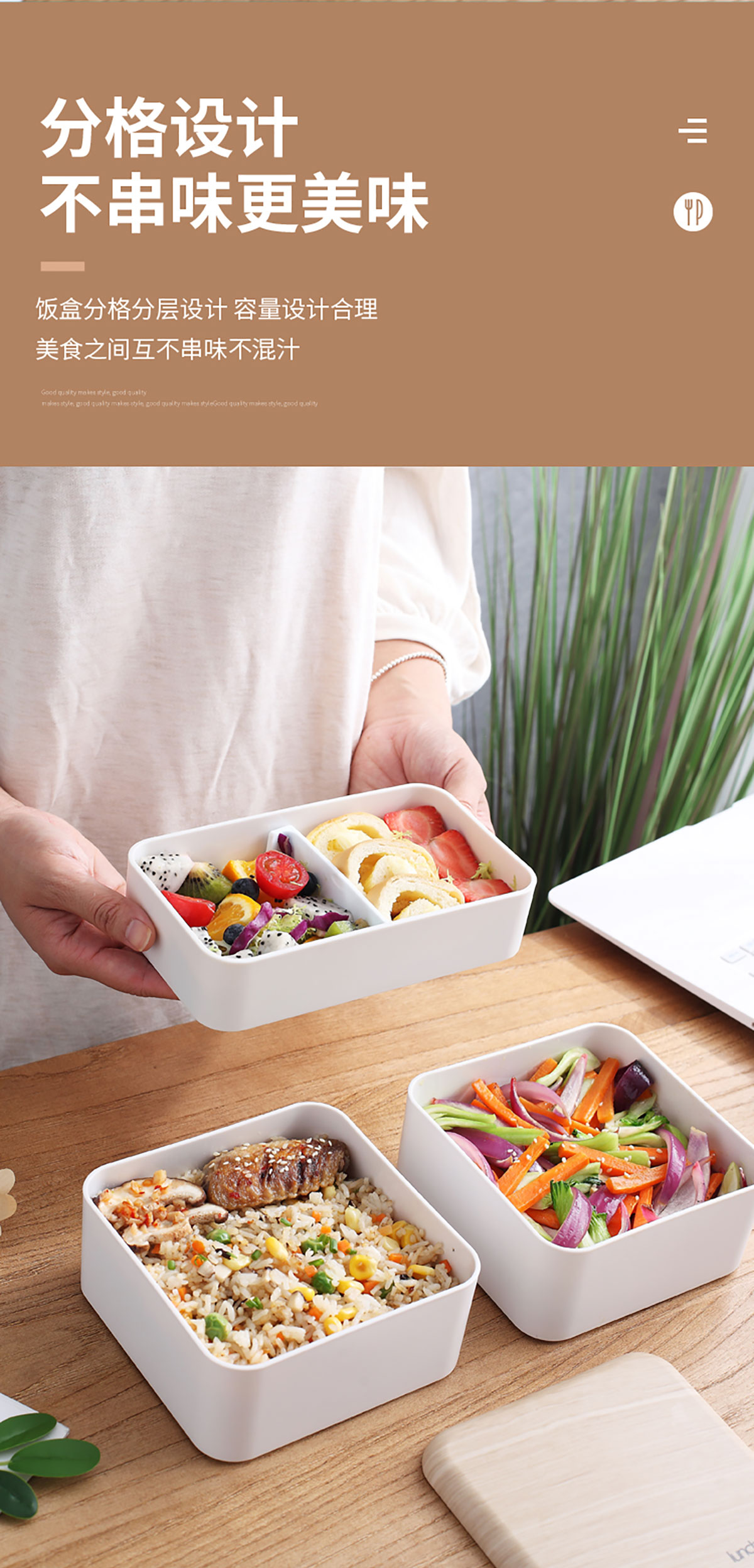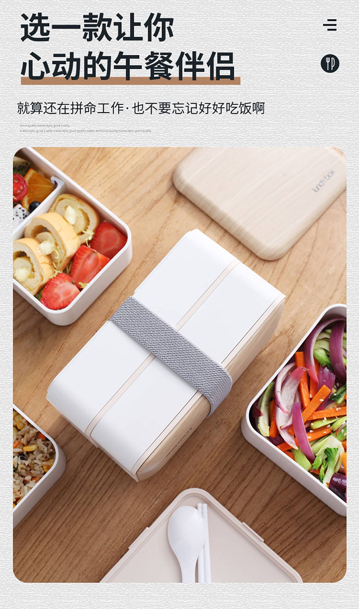木紋長方/正方雙層飯盒1000ml
