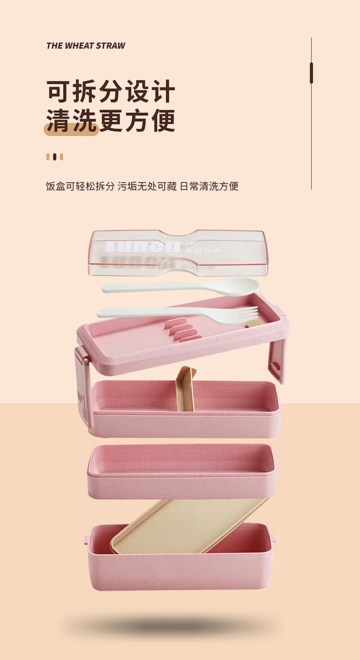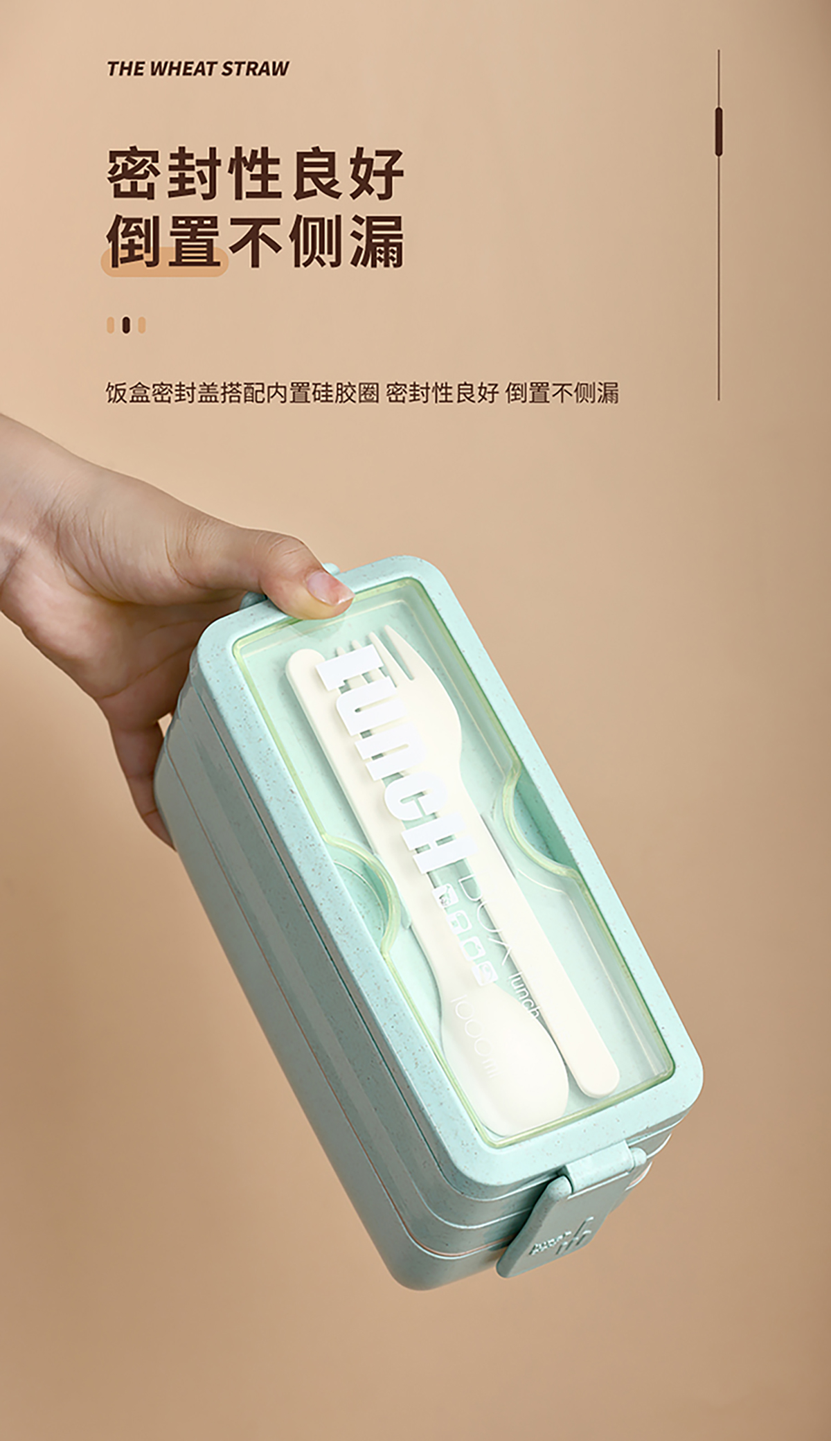 麥秸透明蓋雙層750ml/三層1000ml飯盒