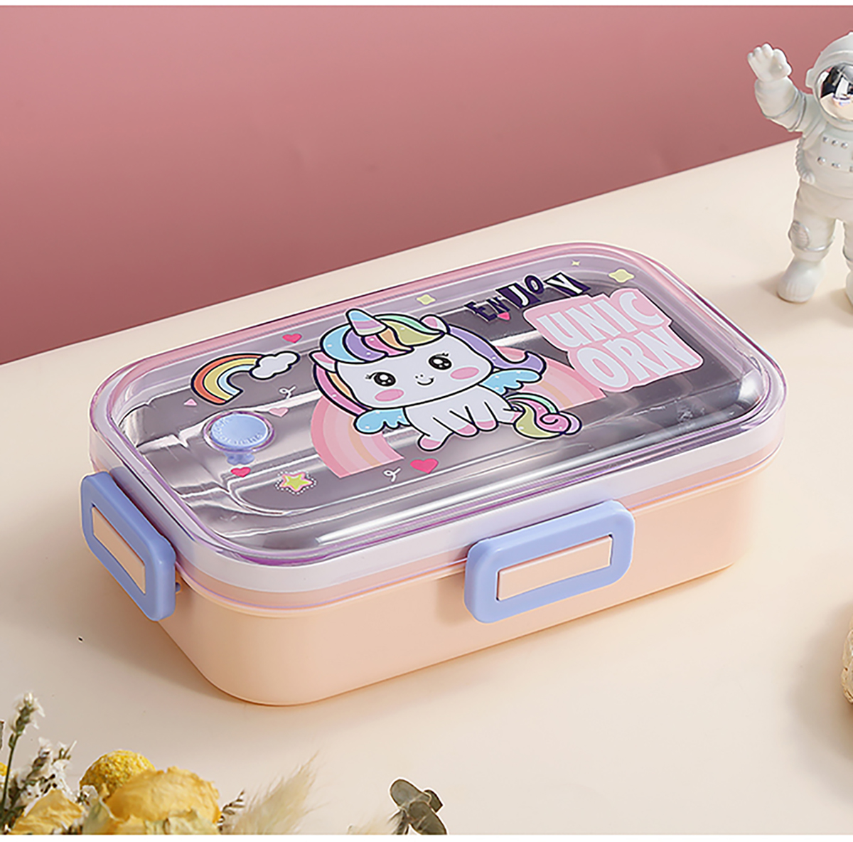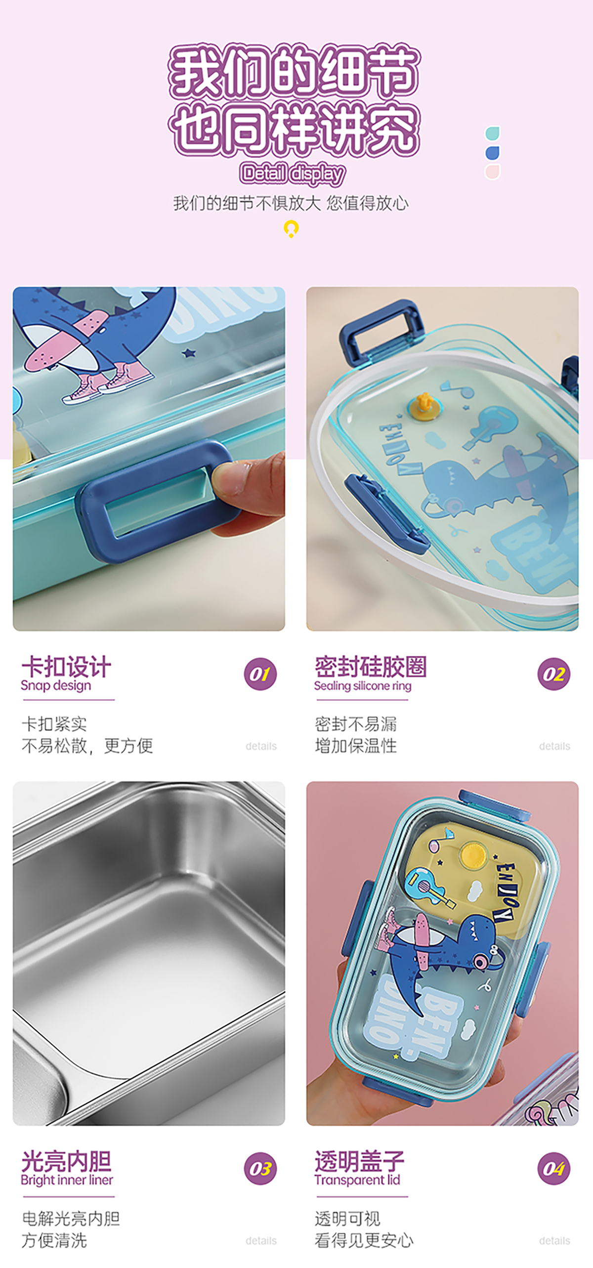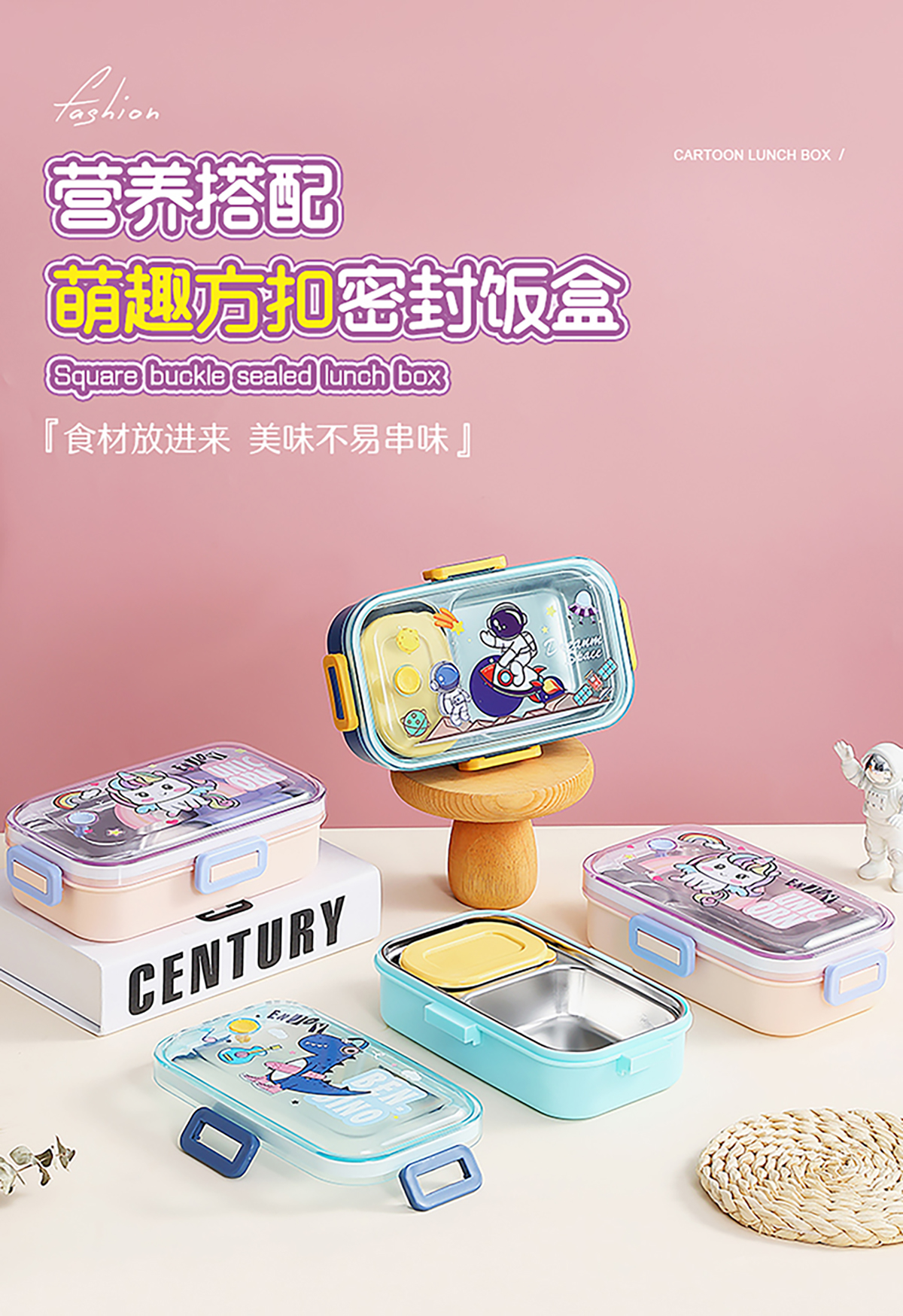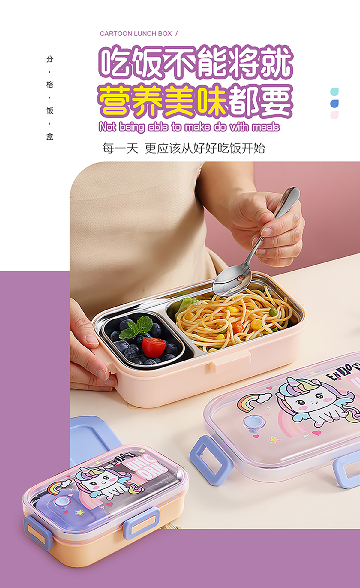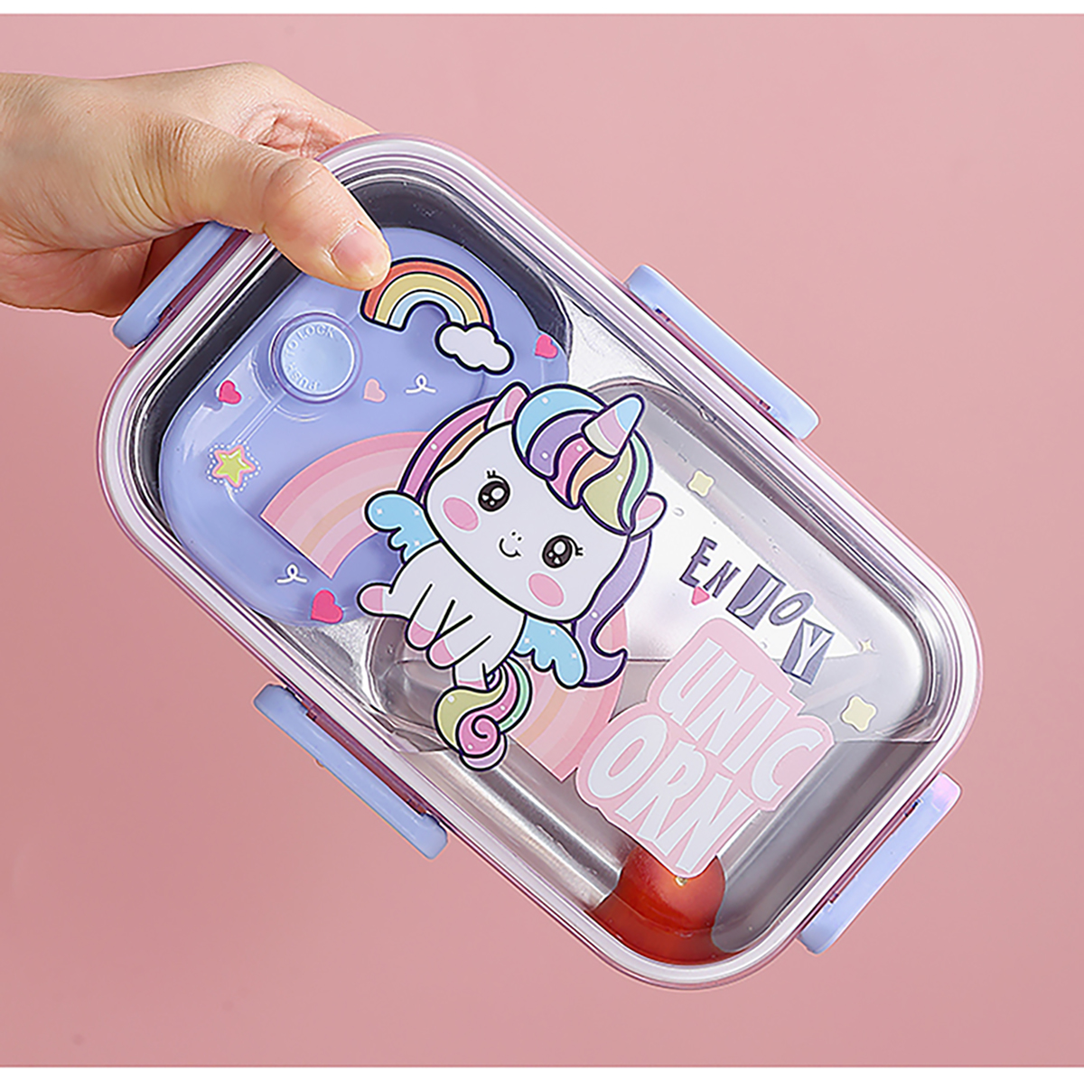 700ml萌趣密封不銹鋼餐盒(卡通單格/二格/二格+碗100ml+不銹鋼勺)