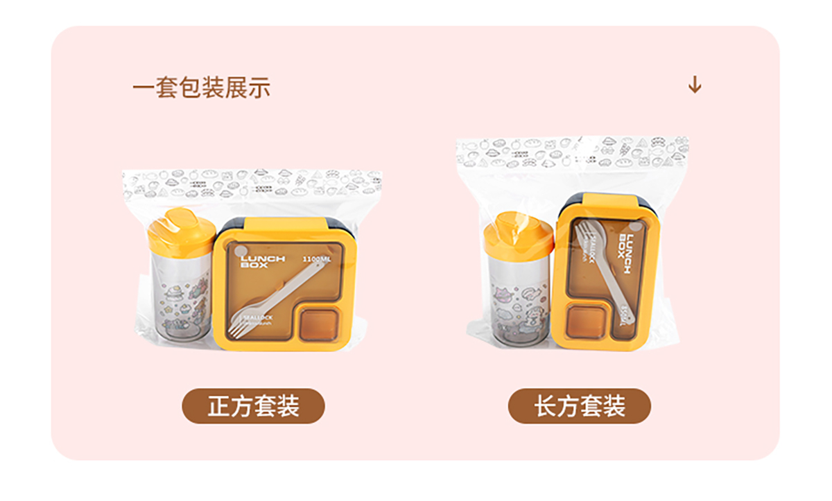 SWY-T01:長方形飯盒:195*119*79mm+水杯:直徑83*高155mm