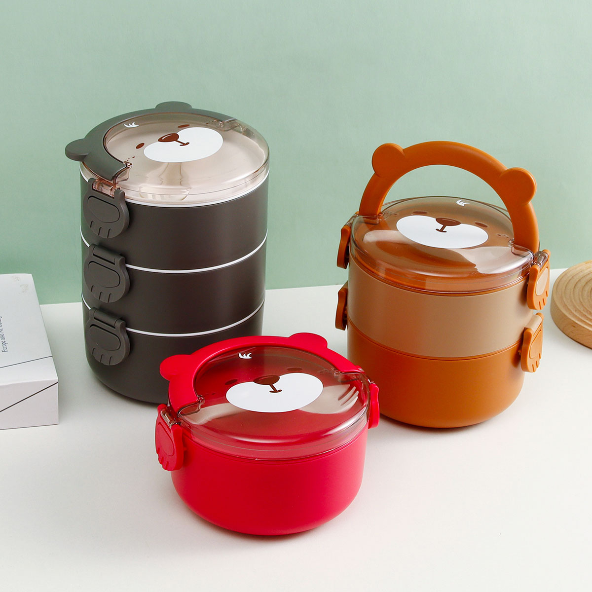 樂(lè)味熊圓形單層/雙層/三層不銹鋼飯盒