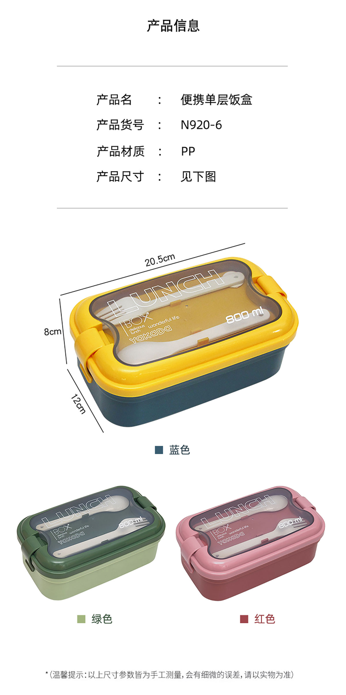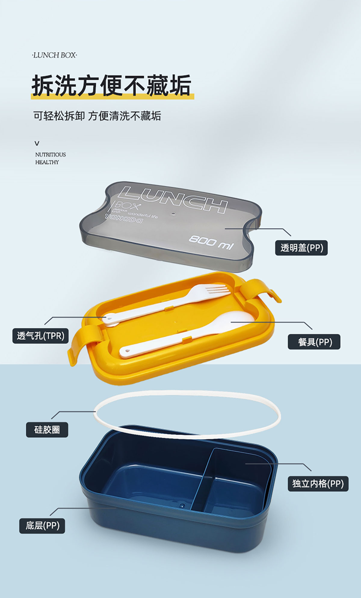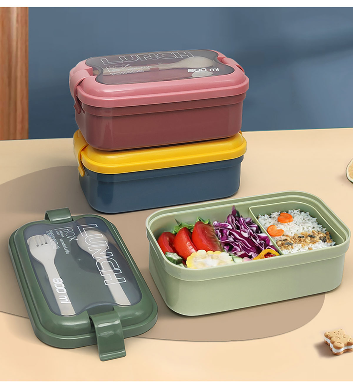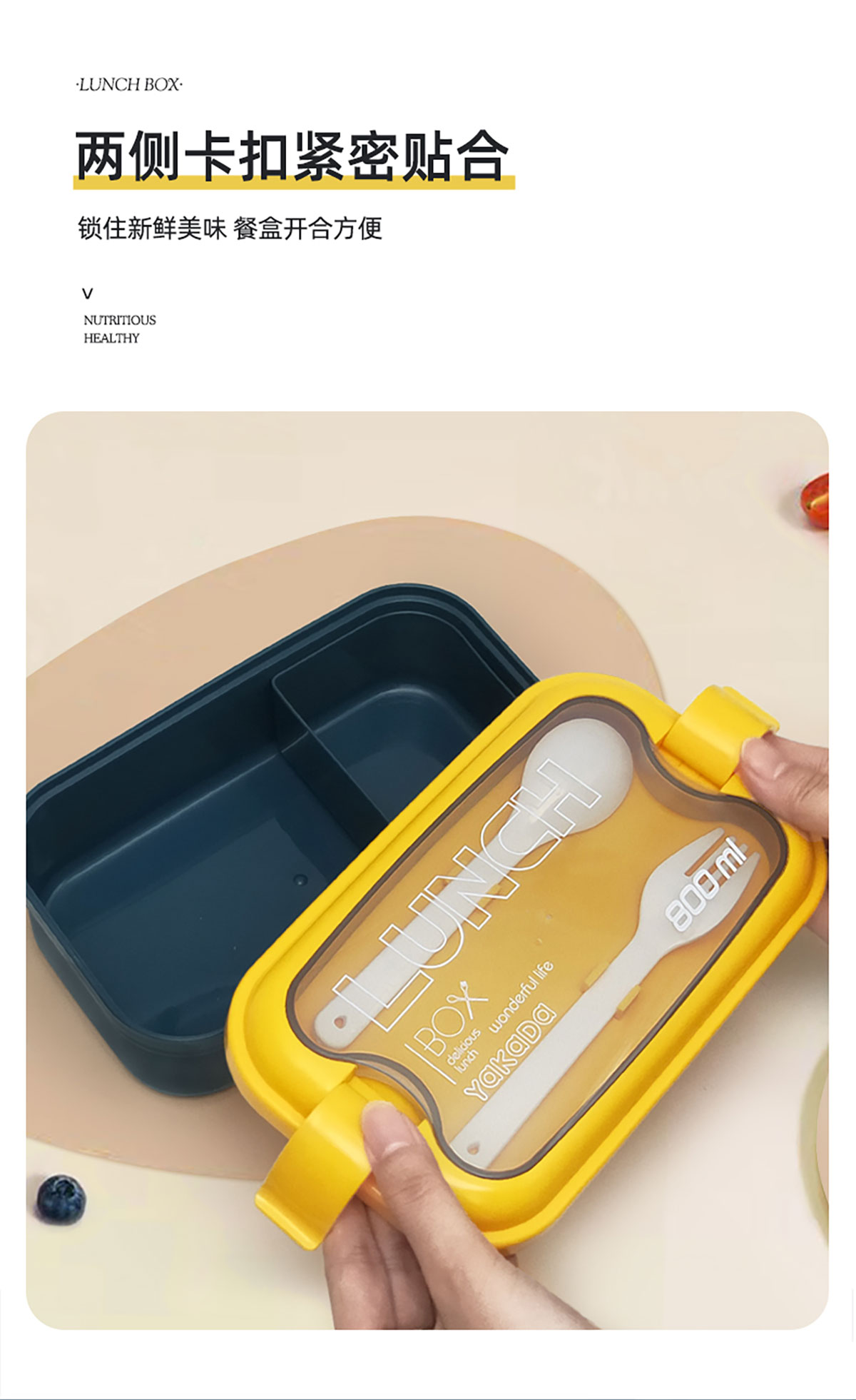 莫蘭迪單層弧扣飯盒800ml