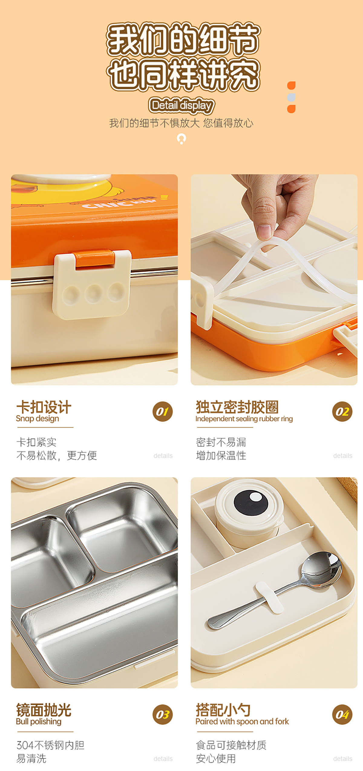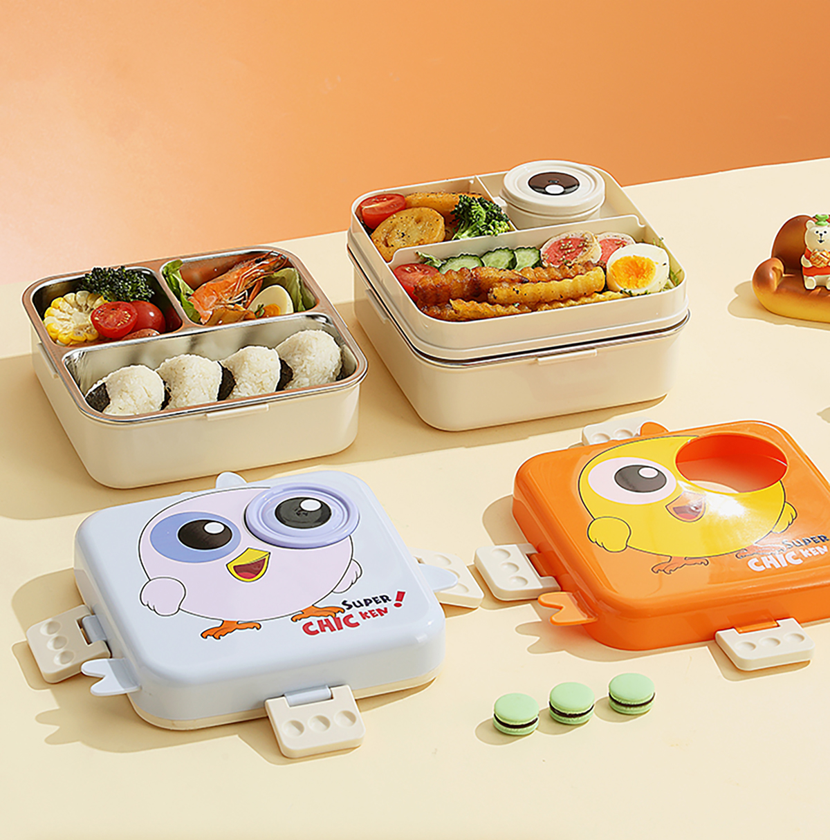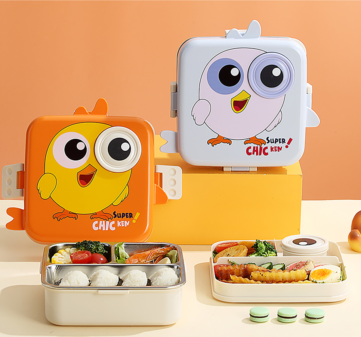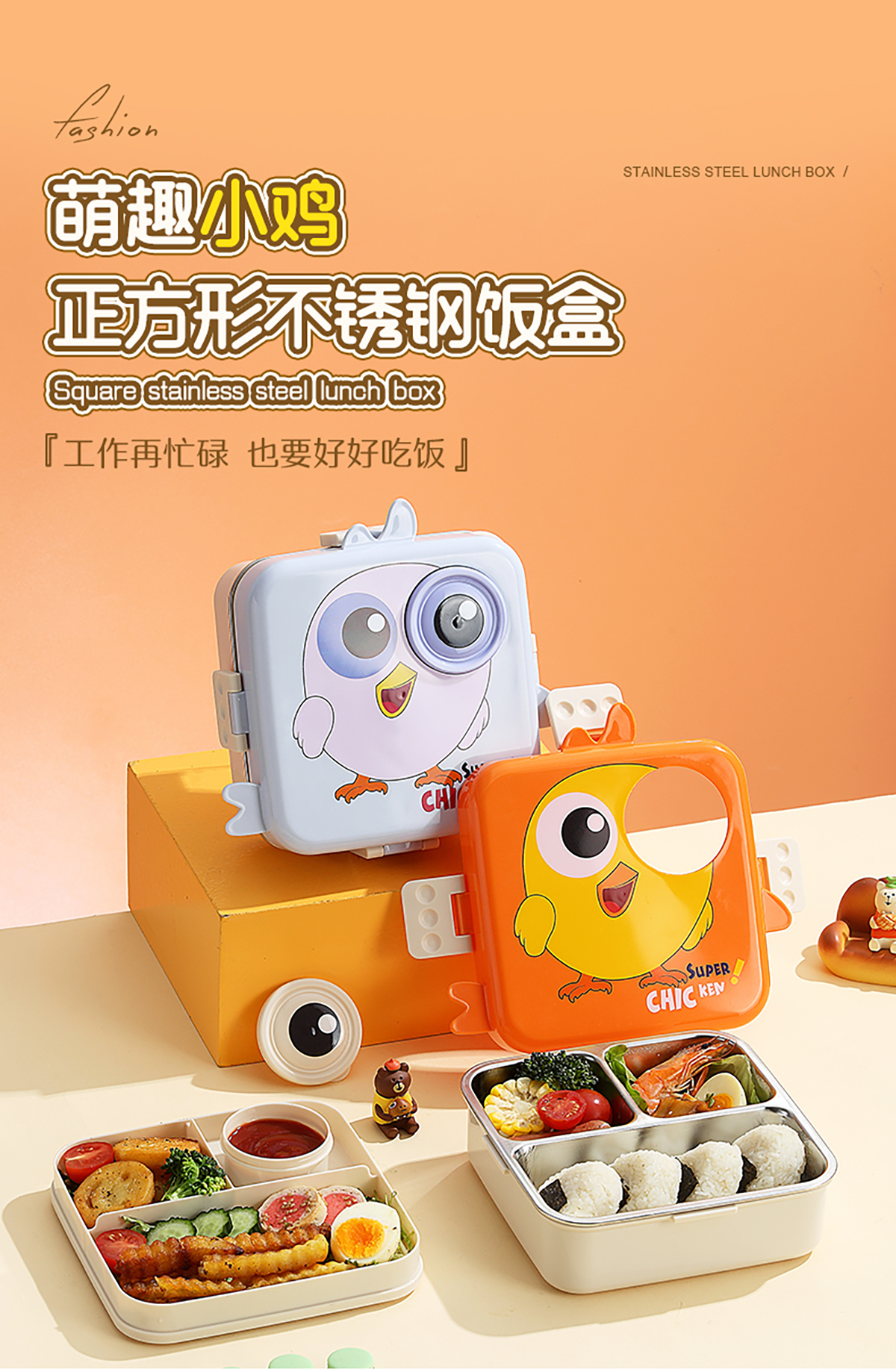 小雞正方形不銹鋼飯盒1120ml+70ml