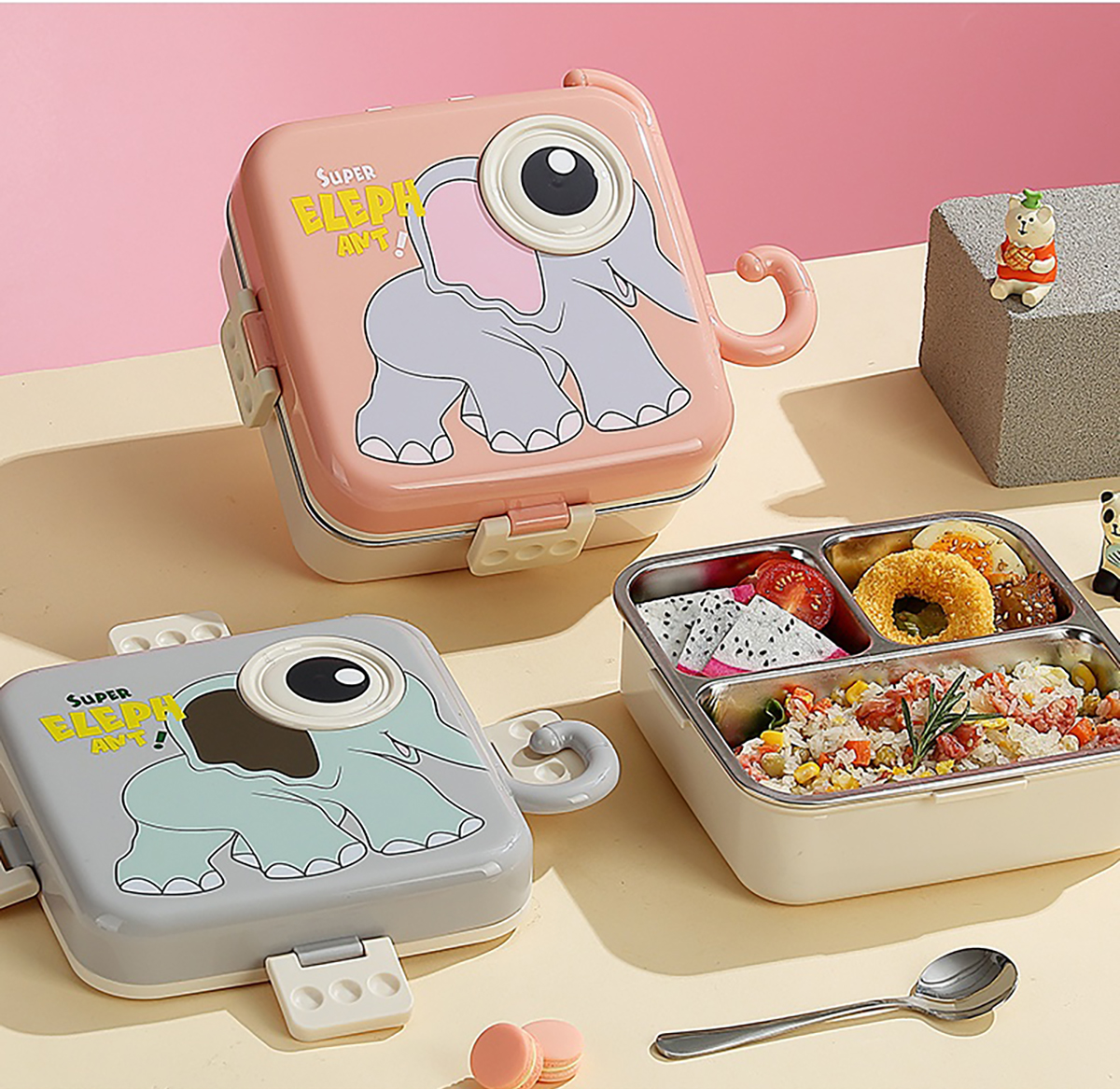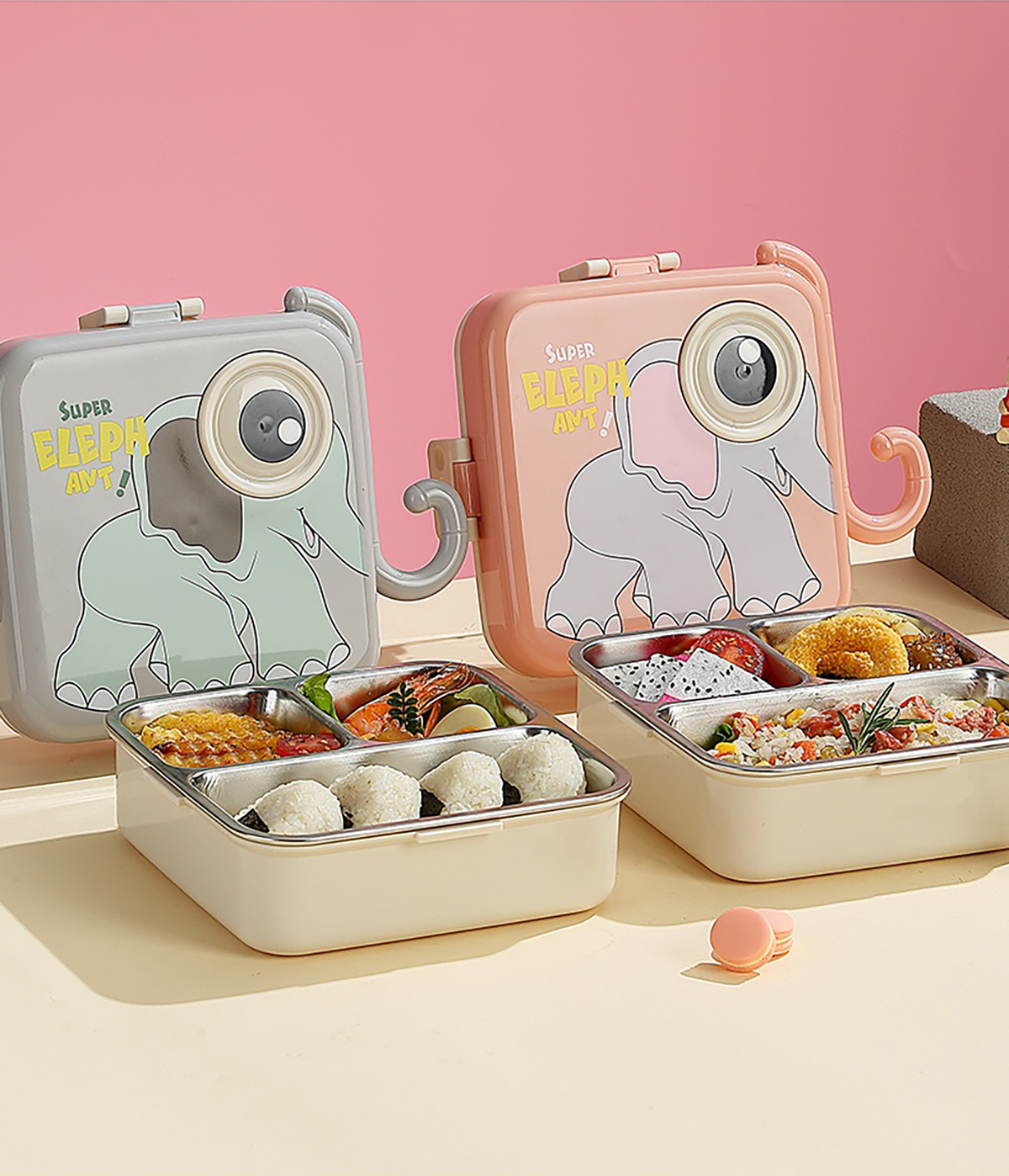 大象正方形不銹鋼飯盒1120ml+70ml
