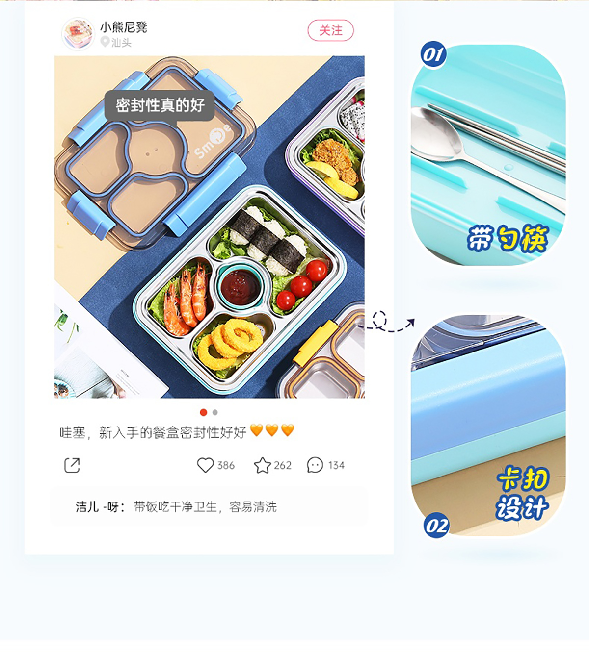 950ml獨(dú)立密封不銹鋼餐盒(3格+PP碗80ml+不銹鋼勺筷)