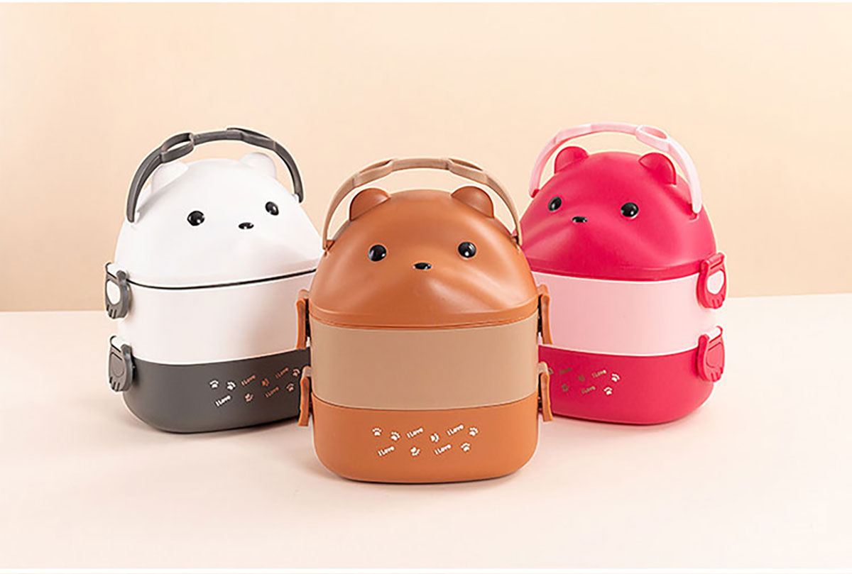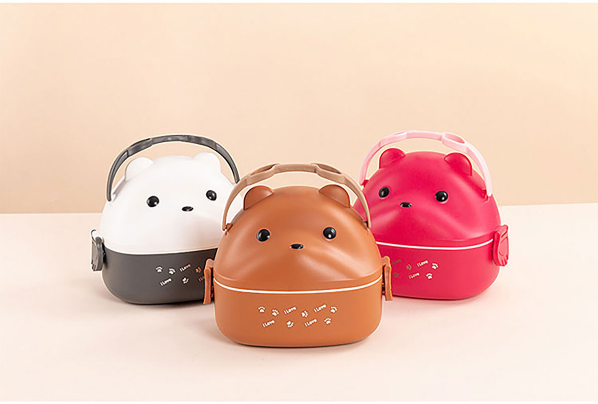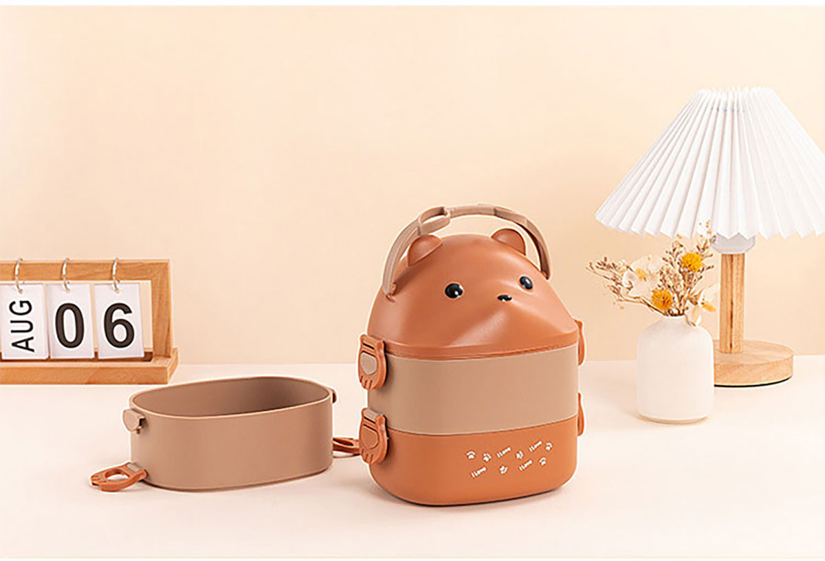 眼鏡熊長(zhǎng)方形單層/雙層/三層飯盒 (帶內(nèi)格)