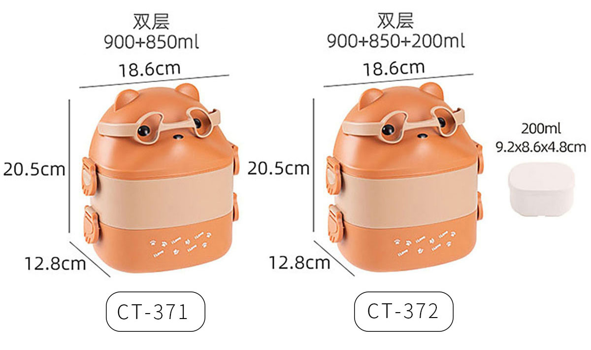 CT-372(雙層帶內(nèi)格):186*128*205mm/900*850ml 內(nèi)格:92*86*48mm/200ml