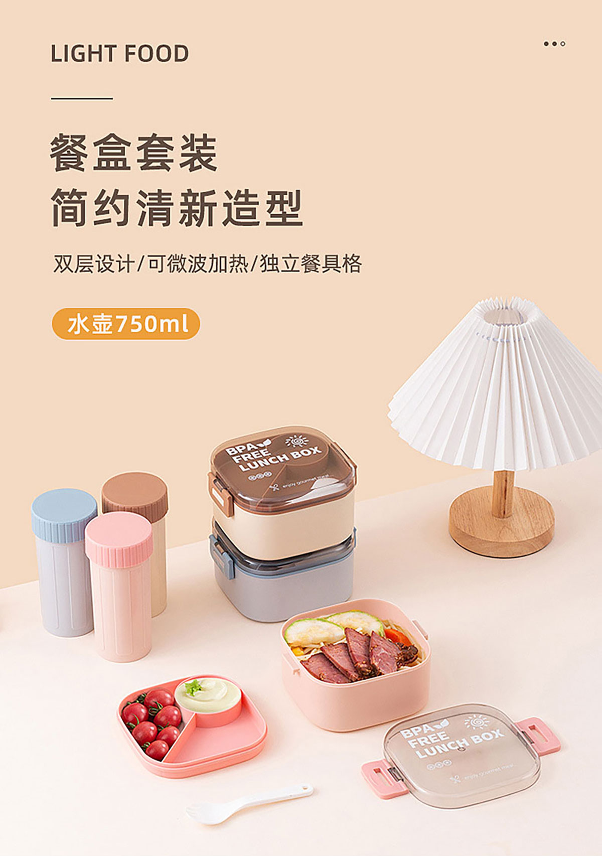 Stuff:飯盒:PP+PC/OPP,水壺:PP+硅膠/OPP