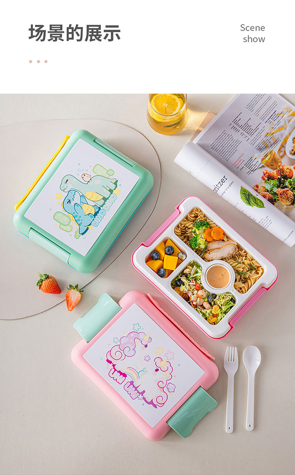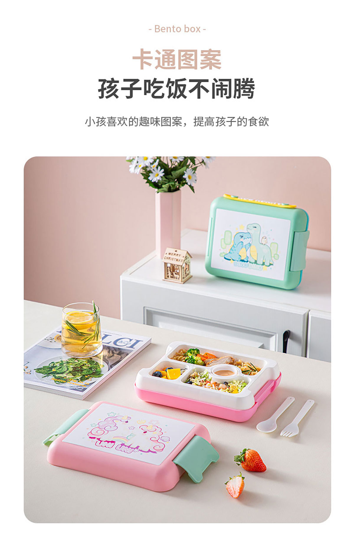 卡通款手提飯盒(配叉勺+醬料盒)