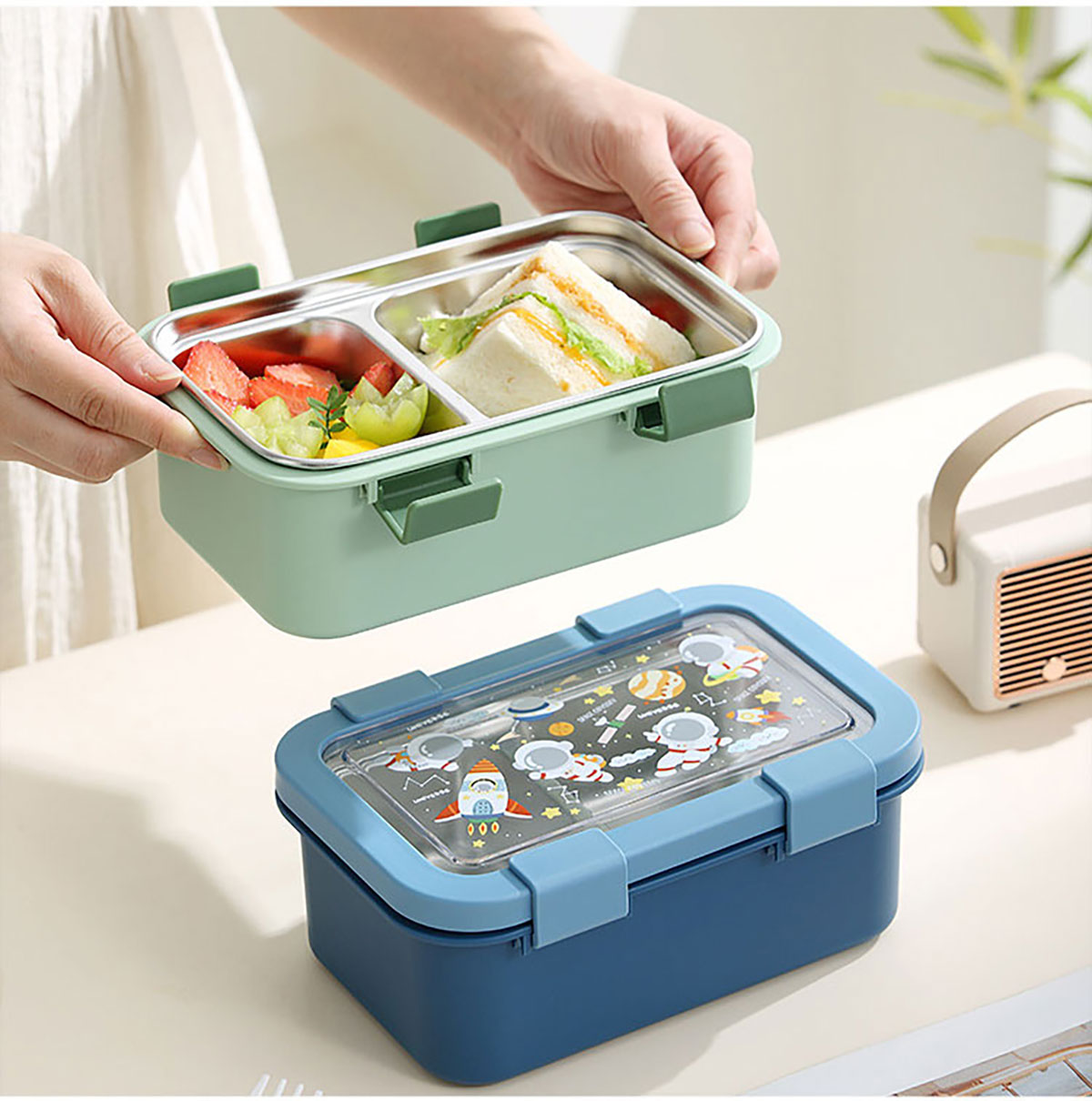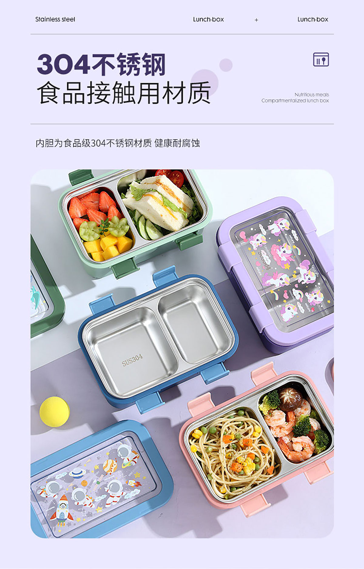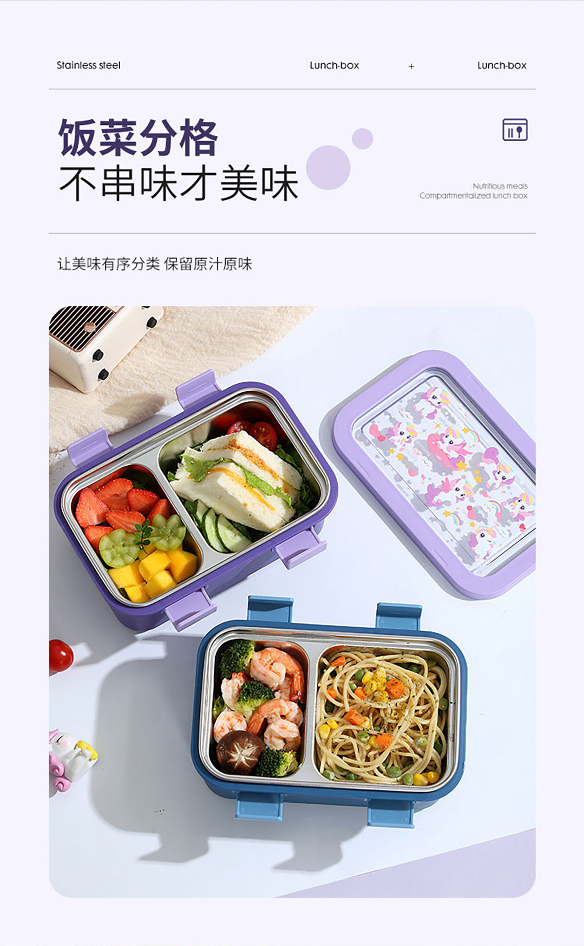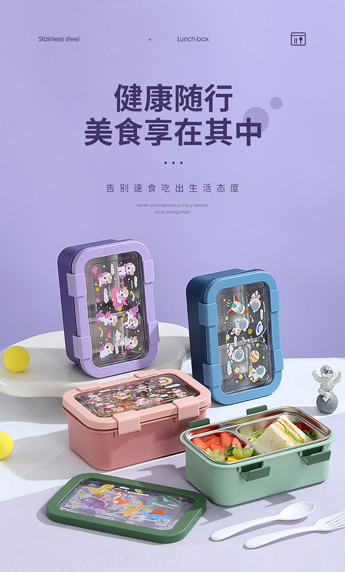 卡通不銹鋼飯盒(不銹鋼二格)800ml