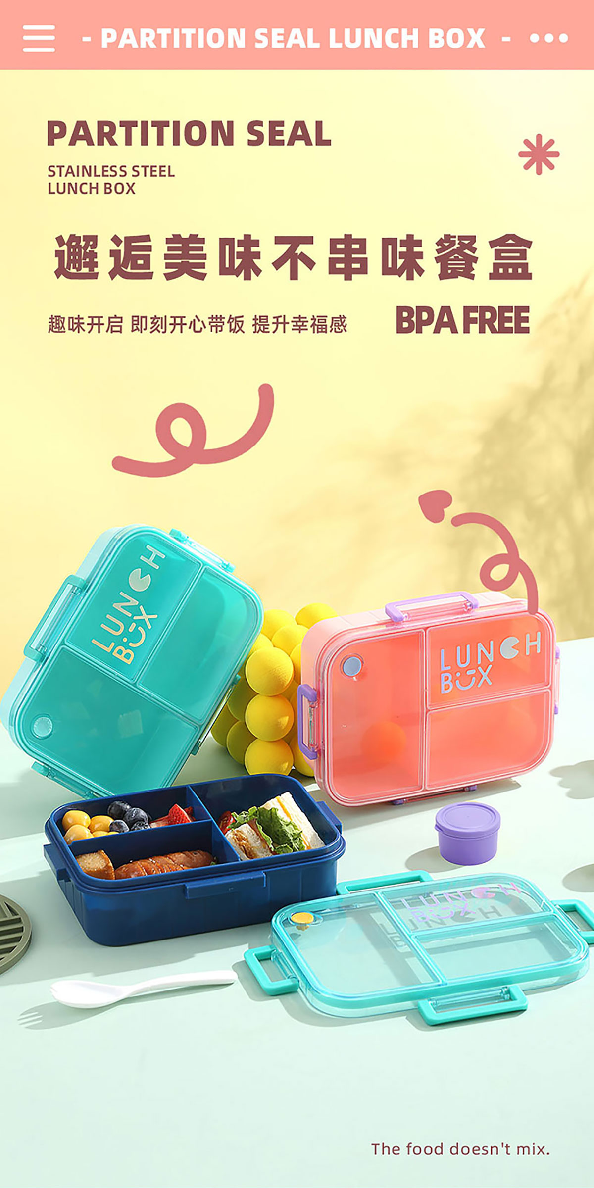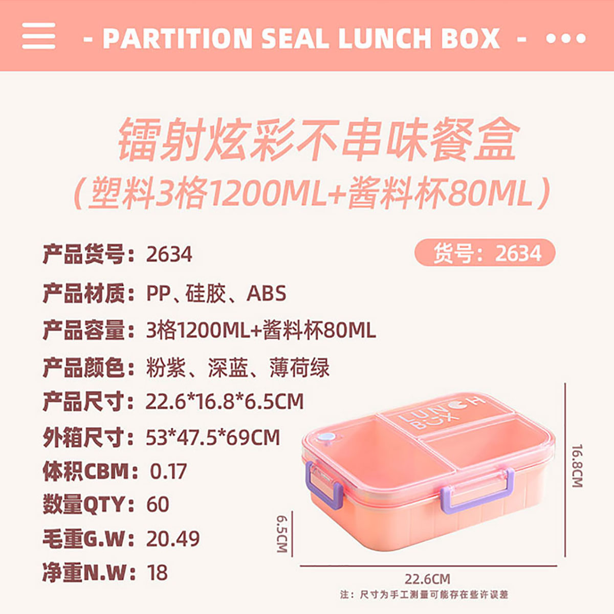 Size: AQX-2633:226*168*65mm/塑料2格1200ml+醬料杯80ml