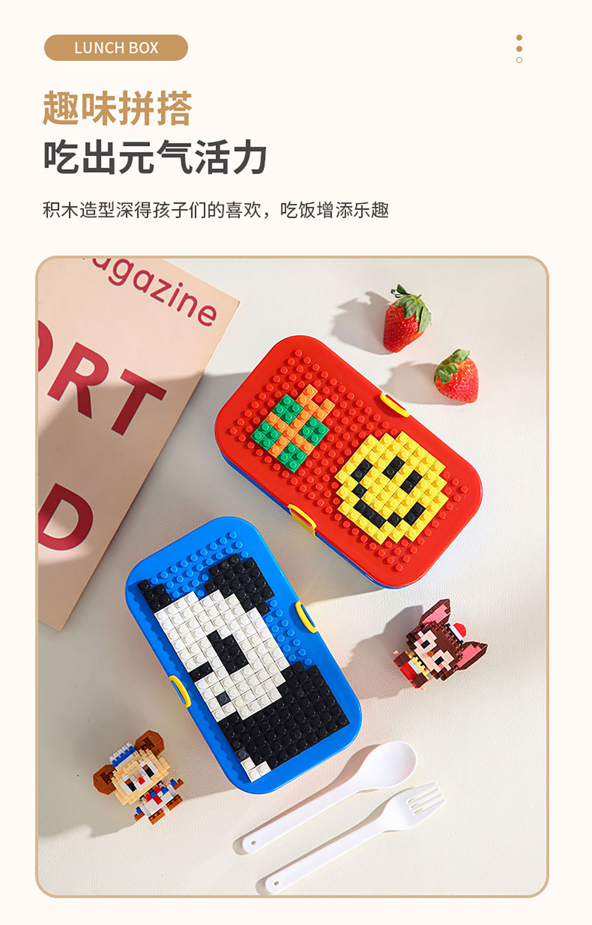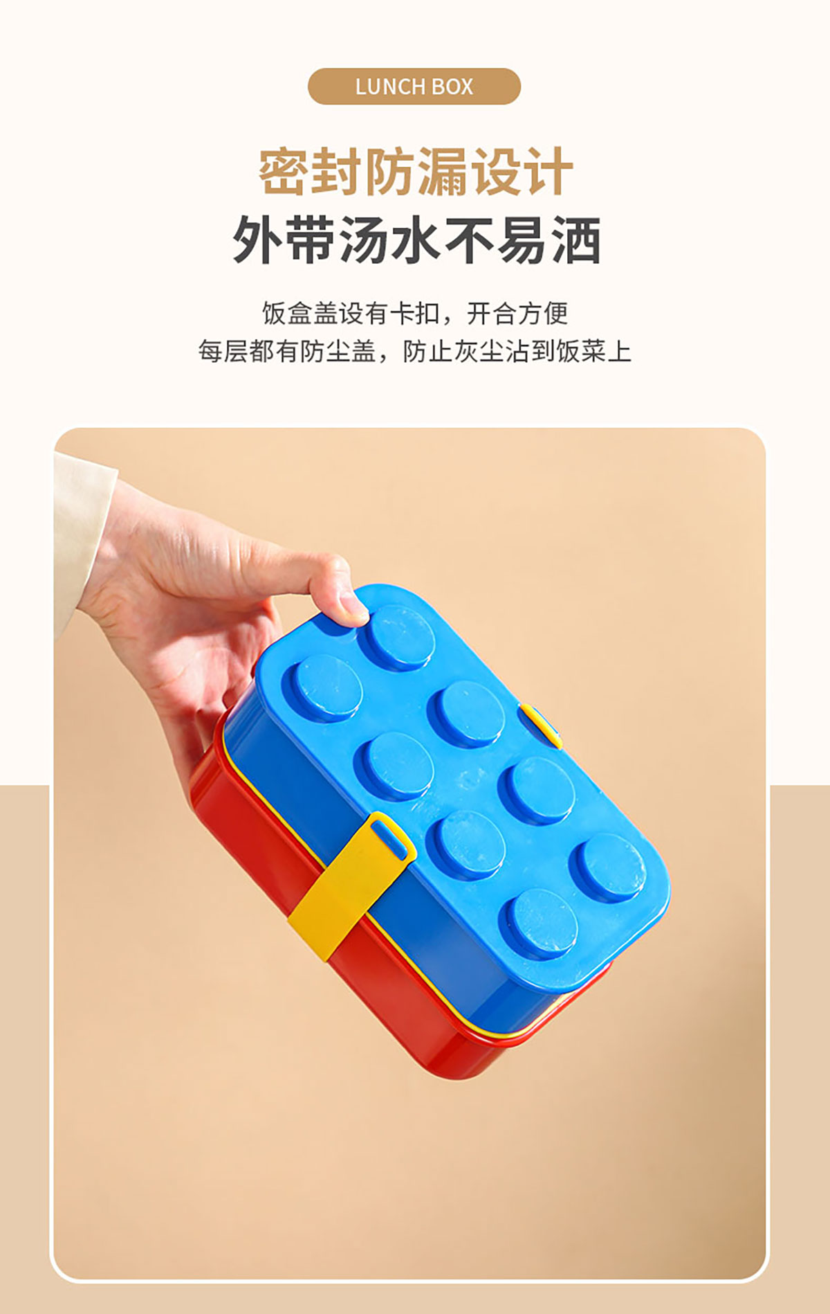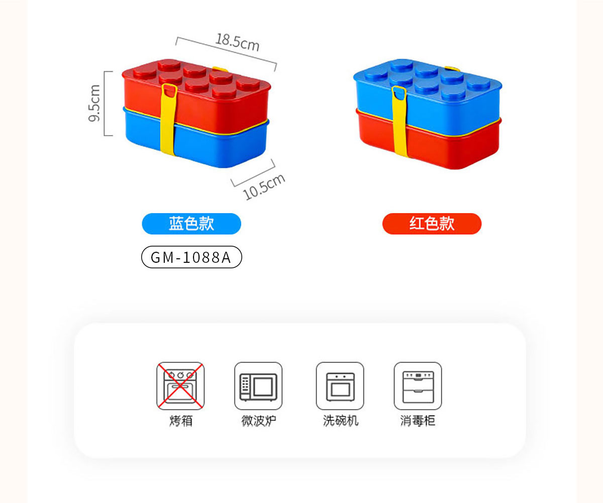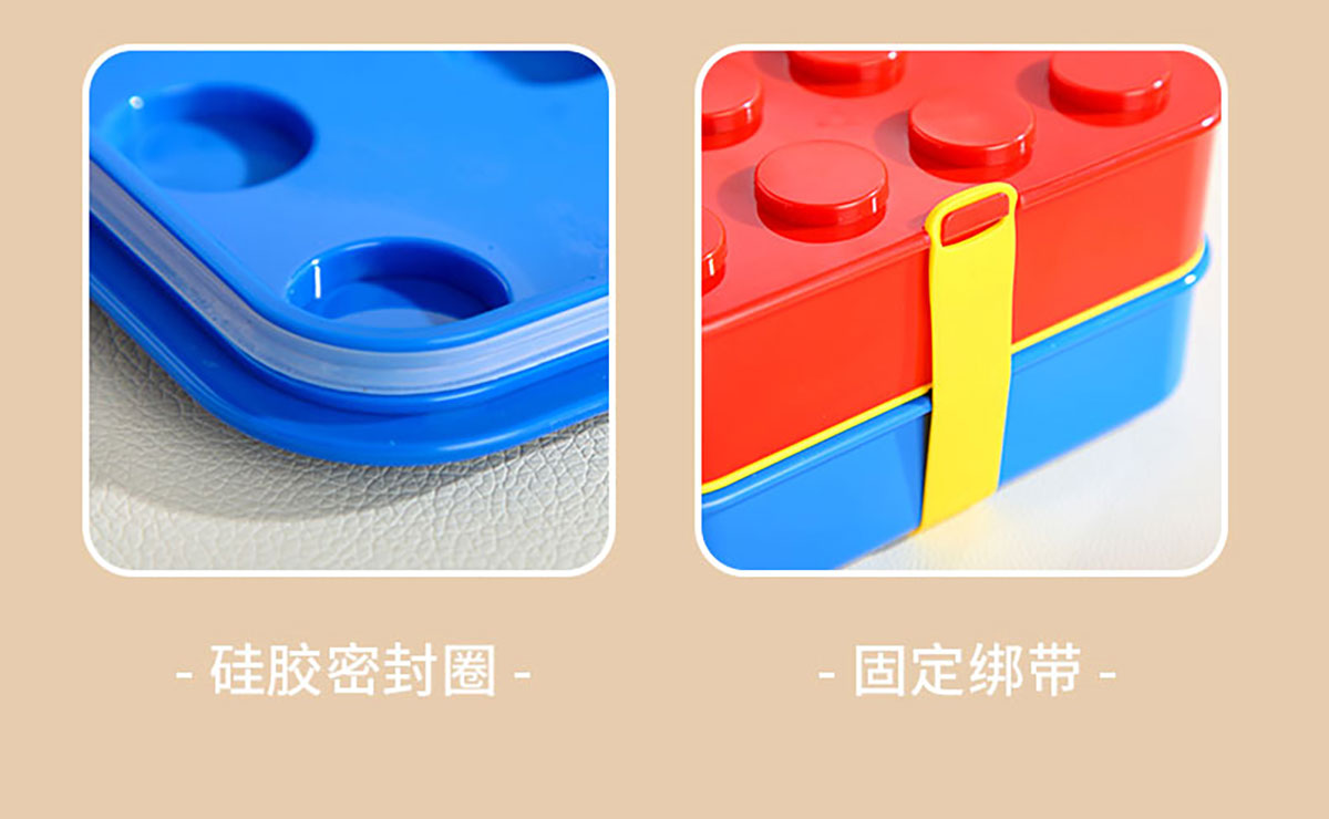 積木雙層綁帶飯盒A款/B款(配叉+勺)1100ml