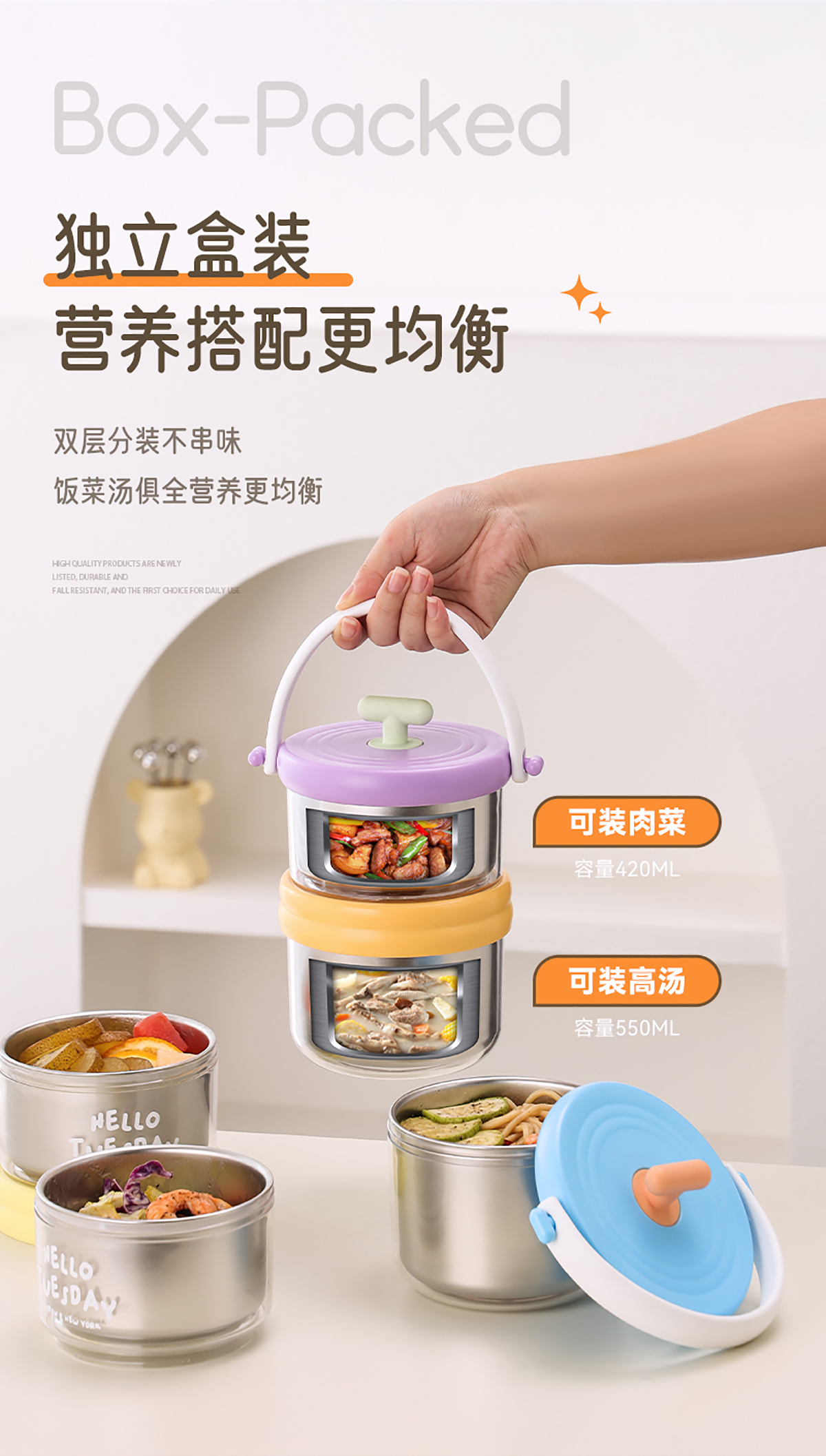 雙層不銹鋼便當盒730+550=1280ml