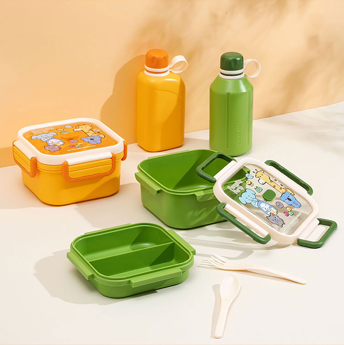 尚趣正方雙層飯盒(1100ml)/+圓形/方形運(yùn)動水壺(500ml)