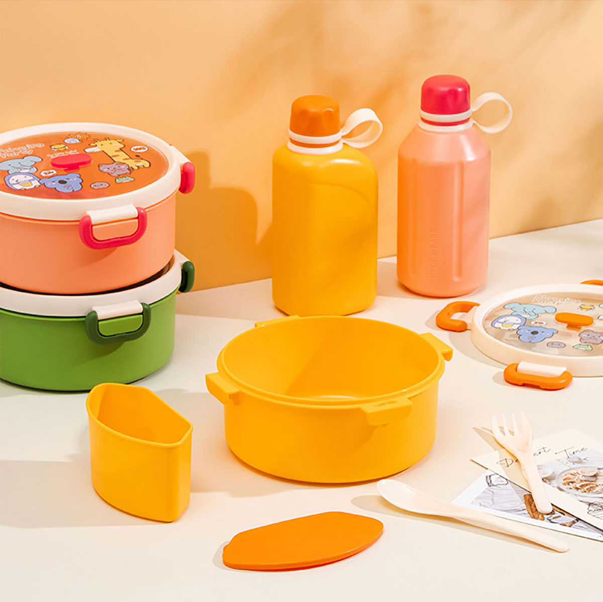 尚趣圓形單層飯盒(1000ml)(含格子)/+圓形/方形運(yùn)動(dòng)水壺(500ml)