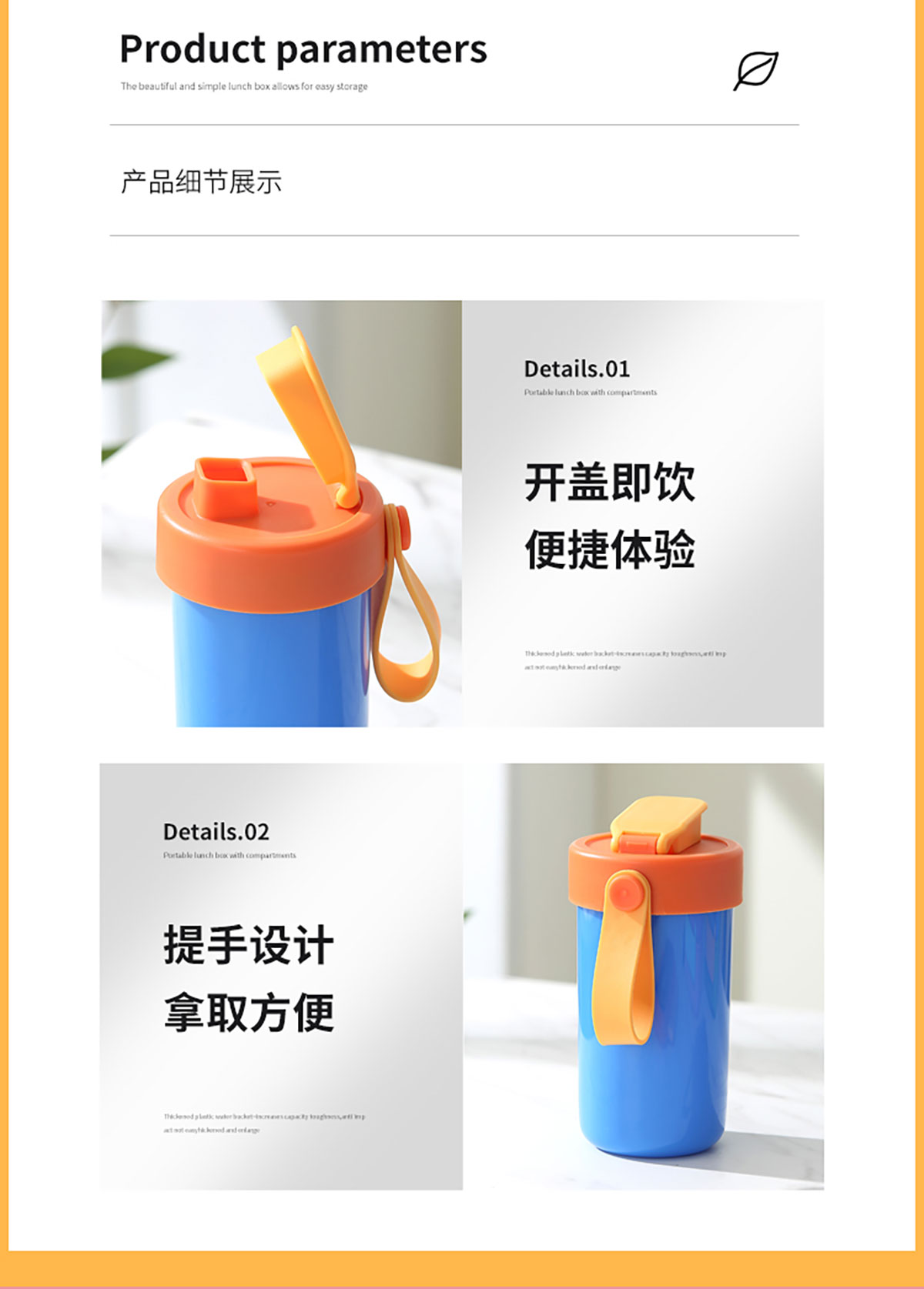 SWY-T208(水杯套裝):飯盒:215*149*71mm/1000ml 水壺:直徑82*高161mm/480ml