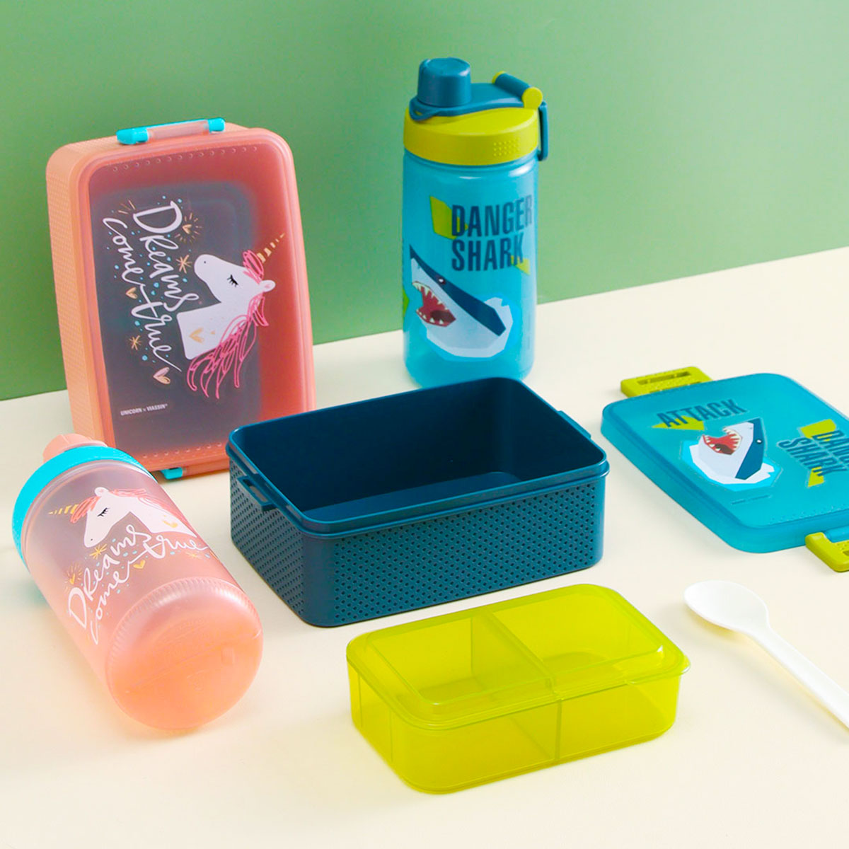 童彩3格飯盒+運(yùn)動水壺套裝(含內(nèi)盒800ml+500ml)