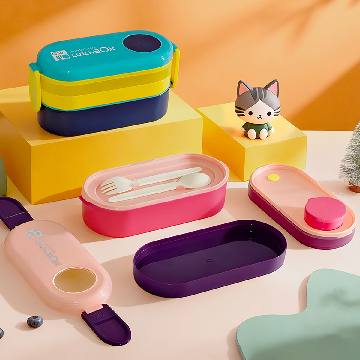 三層便當盒(帶硅膠)(900ML)